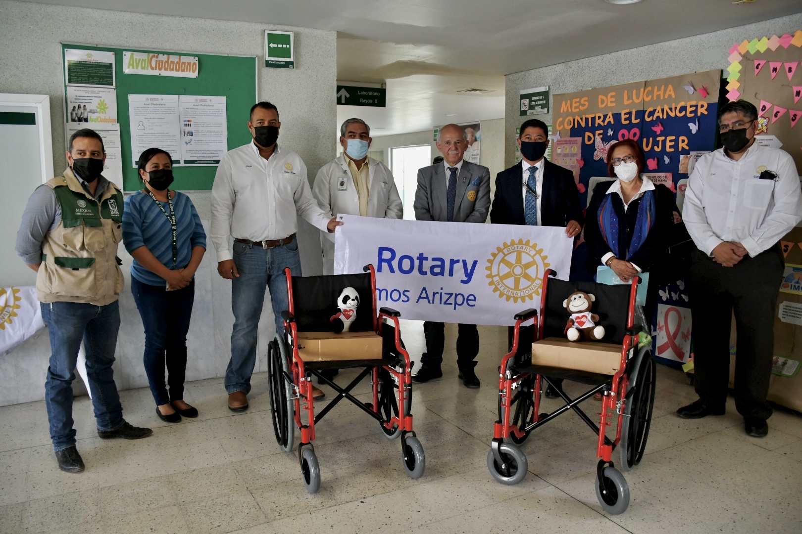 Integrantes del Club Rotario de Ramos Arizpe entregaron este martes, dos sillas de ruedas así como figuras de peluche a beneficio de pacientes internados y personal del Hospital Rural de Zona no. 33, mejor conocido como el Hospital Ixtlero.