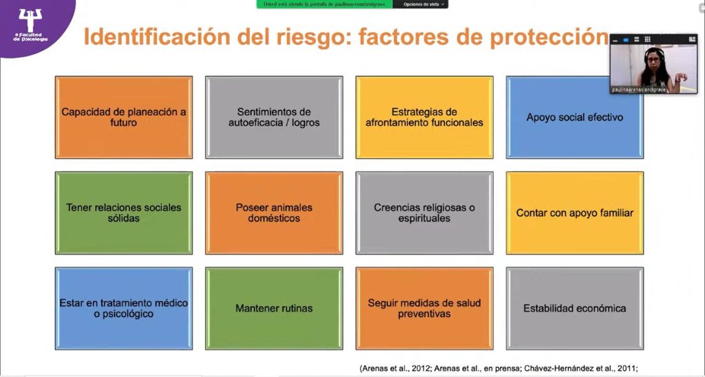 Al participar en el ciclo de charlas “Una mirada desde la Psicología”, organizada por la FP de la UNAM, Arenas Landgrave explicó que desarrolló el modelo de Órdenes de Riesgo de Suicidio (ORS), mediante el cual se busca fortalecer la labor de los profesionales para apoyarlos a partir del ámbito comunitario.