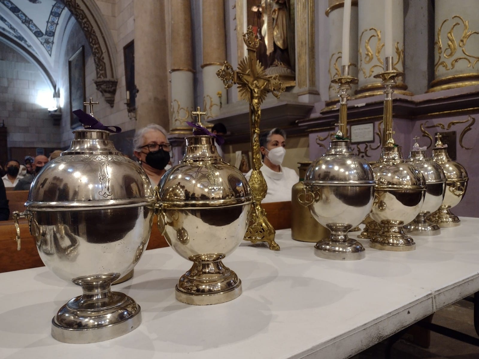 Además de este simbólico acontecimiento propio de la Semana Santa, monseñor Hilario encabezó la bendición del Santo Crisma, Santos Óleos, aceites y esencias que se utilizan en la ordenación sacerdotal, bautizos, confirmaciones y unción de los enfermos. (OMAR SOTO / EL HERALDO)