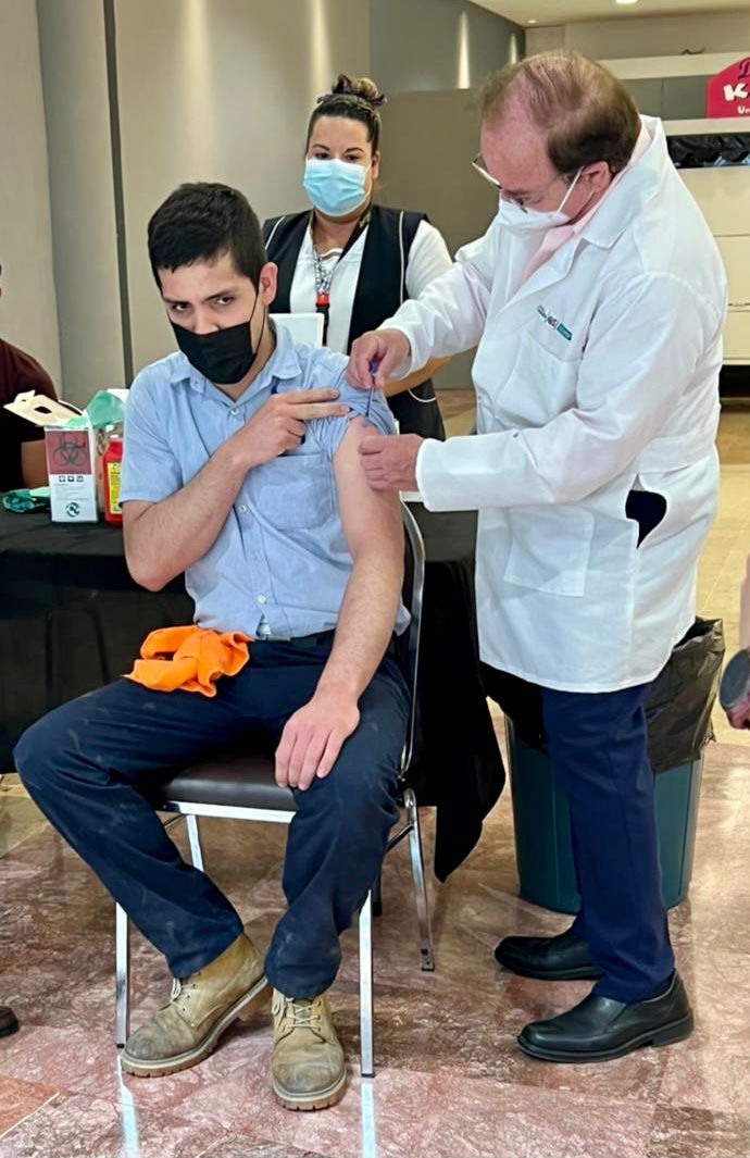 Bernal Gómez aplicó las primeras dosis de esta jornada estatal en Torreón en Plaza Galerías Laguna.