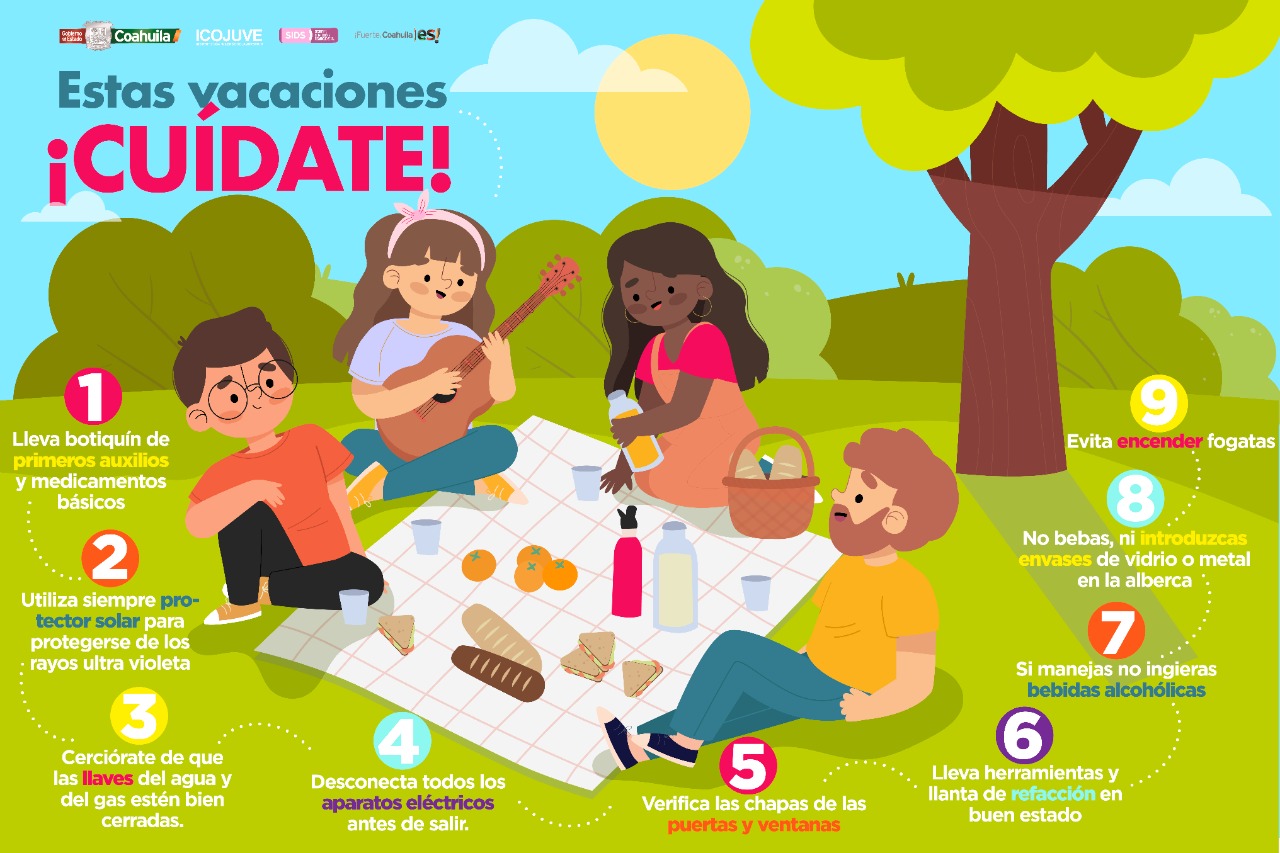 Agregó que el ICOJUVE pone a disposición de la juventud coahuilense información respecto a los diversos efectos negativos que el consumo excesivo de alcohol tiene en la calidad de vida de las personas, y además comparte diversas recomendaciones para prevenir que se vean involucrados en accidentes automovilísticos durante este período vacacional, realizando una serie de recomendaciones para que disfruten de sus vacaciones de manera responsable, tales como no encender fogatas, mantener las medidas de higiene pertinentes, no tirar basura y tener un botiquín de primeros auxilios a la mano.