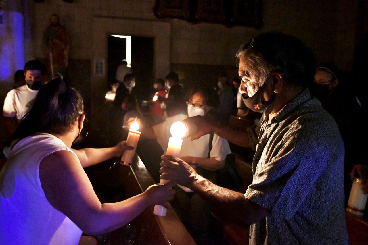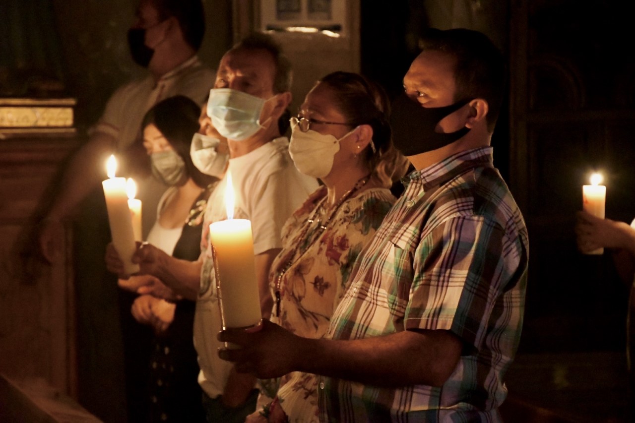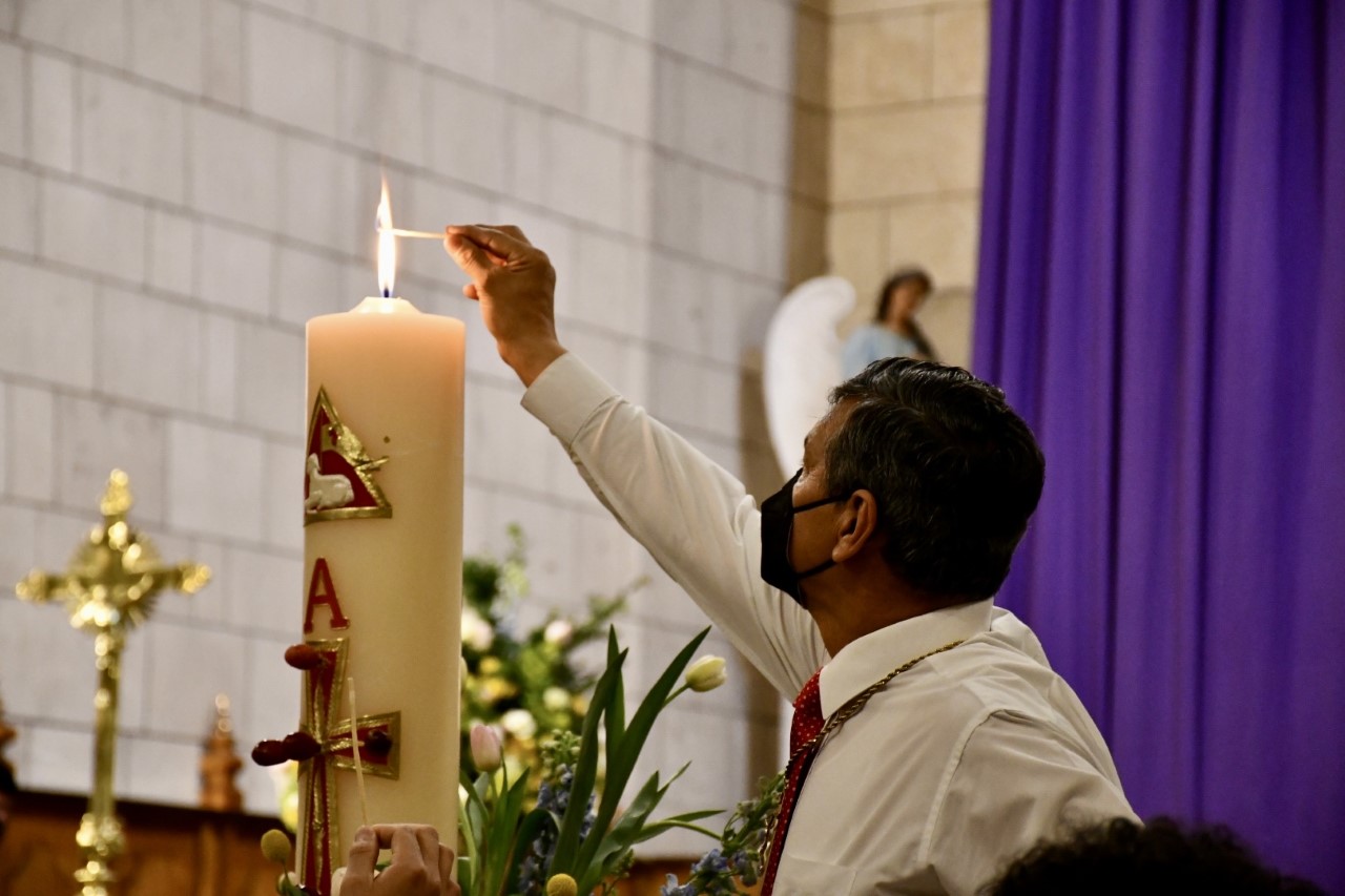 Cabe mencionar que la Vigilia Pascual se inicia cuando se apagan las luces de la iglesia y el sacerdote enciende una llama de fuego, con el cual se ilumina el cirio pascual, mismo que es bendecido y llevado en procesión a través de la iglesia en plena obscuridad.