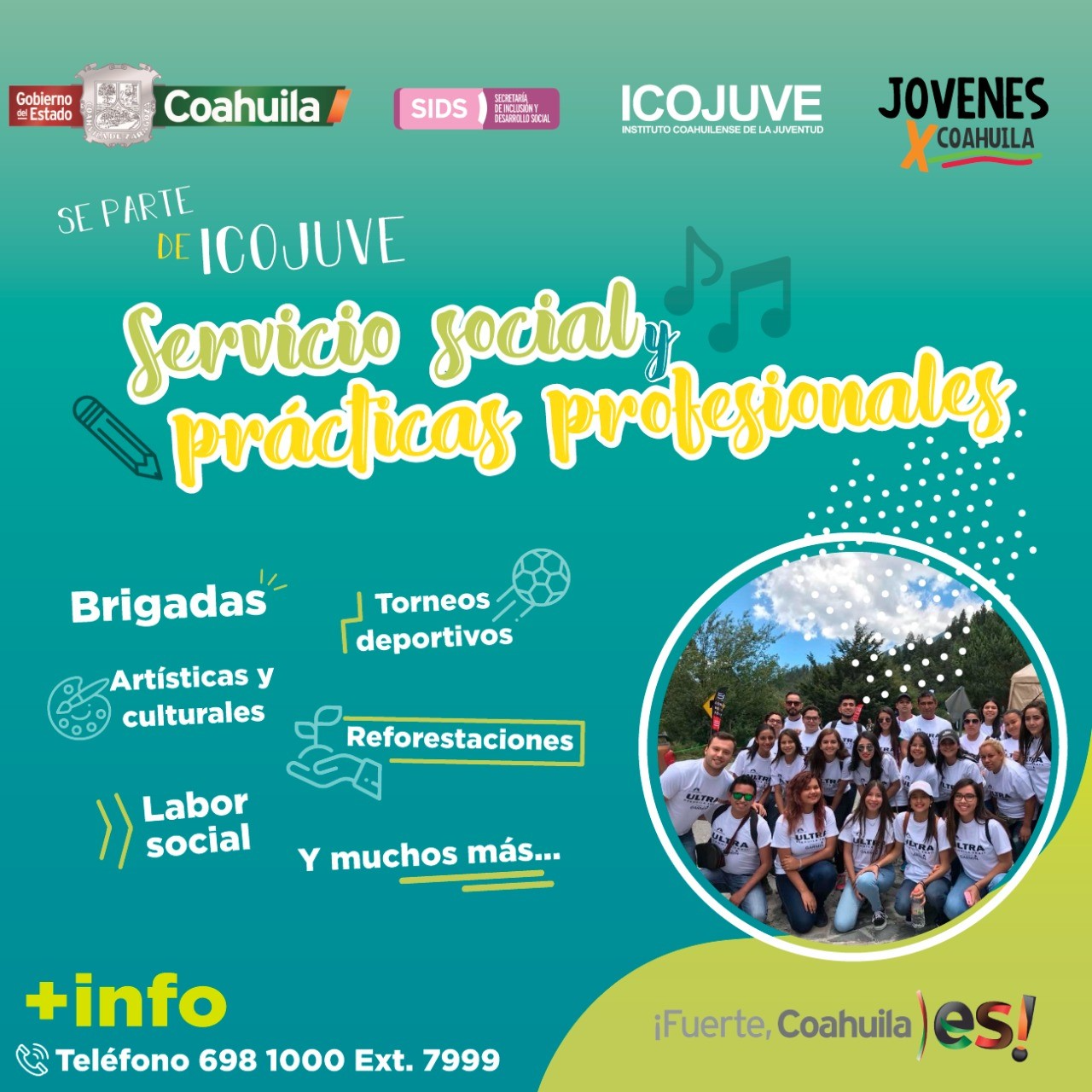 El Gobierno del Estado de Coahuila, a través de la Secretaría de Inclusión y Desarrollo Social y el Instituto Coahuilense de la Juventud, fomenta la participación activa de las y los jóvenes en actividades con un impacto positivo en su comunidad, e invita a estudiantes universitarios a realizar su servicio social y prácticas profesionales en el programa “Jóvenes X Coahuila”.