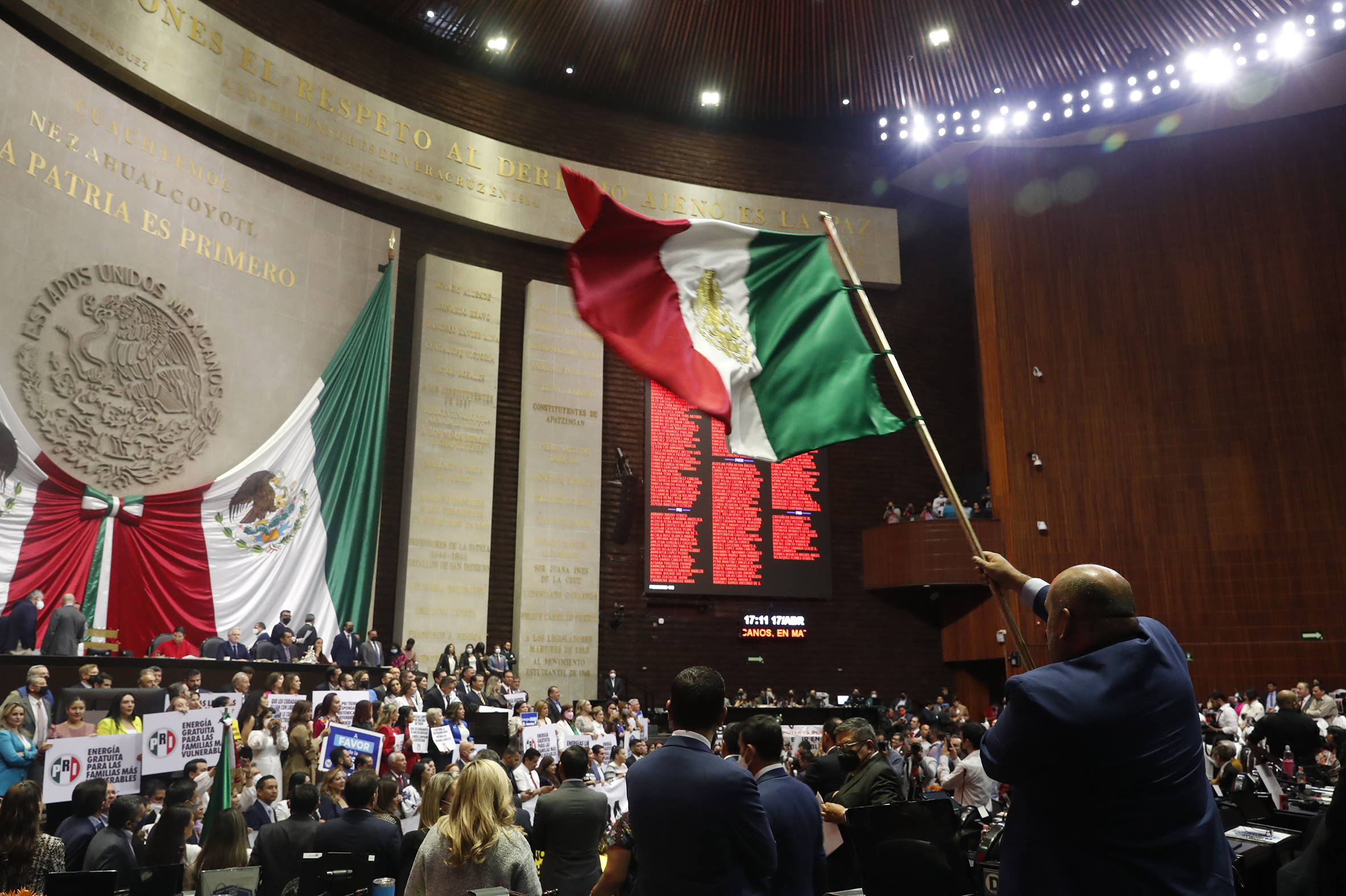 Ciudad de México.- Tras una maratónica sesión en el Palacio Legislativo de San Lázaro, el dictamen de reforma a la Constitución Política en materia de energía y de acceso a la energía eléctrica, no alcanzó la mayoría calificada, por lo que el proyecto fue desechado en los últimos minutos del domingo.
