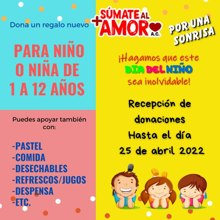 A través de la red social de Facebook, la asociación Niños con Leucemia AC inició una colecta de obsequios entre los habitantes de esta capital, mismos que serán entregados en este 30 de abril a las niñas y niños de 1 a 12 años de edad que son apoyados por esa institución benéfica.