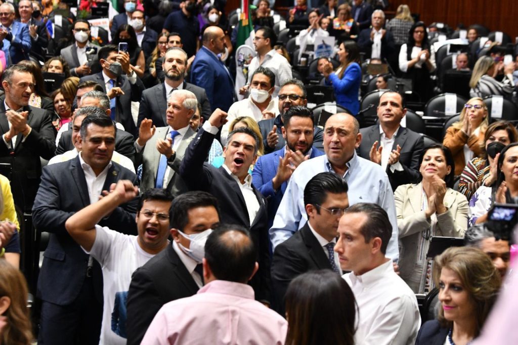 Al final de la sesión, los integrantes de la coalición “Va por México”, conformada por el PRI, PAN y PRD, gritaban “No pasó. No pasó” y, enseguida, entonaron el Himno Nacional desde sus curules.