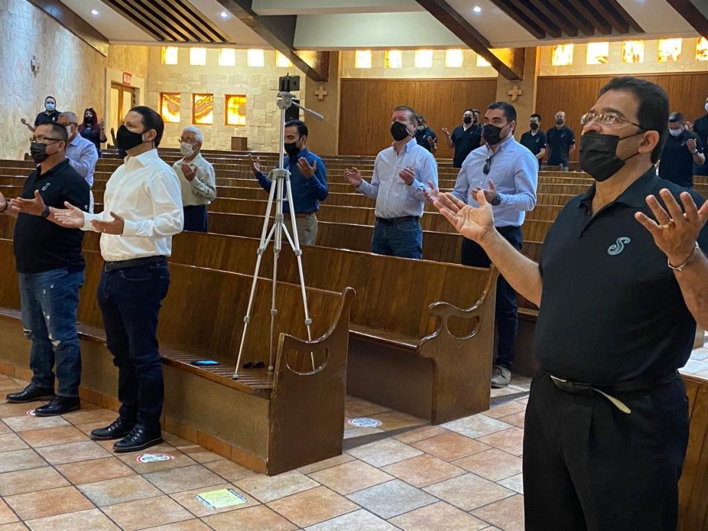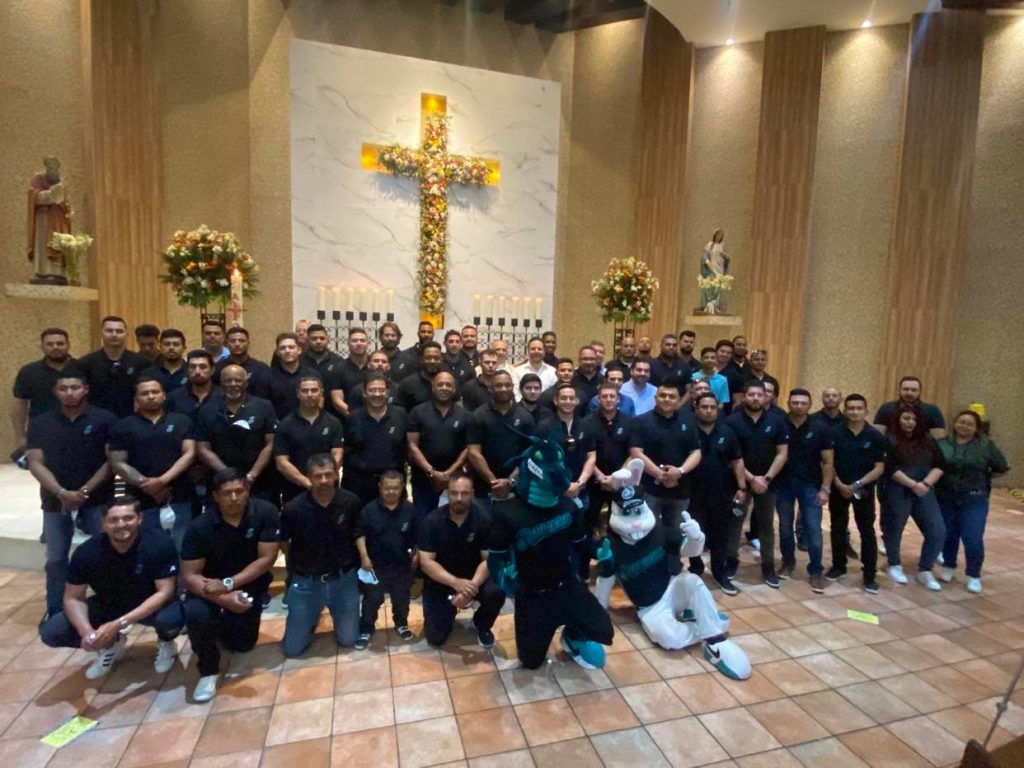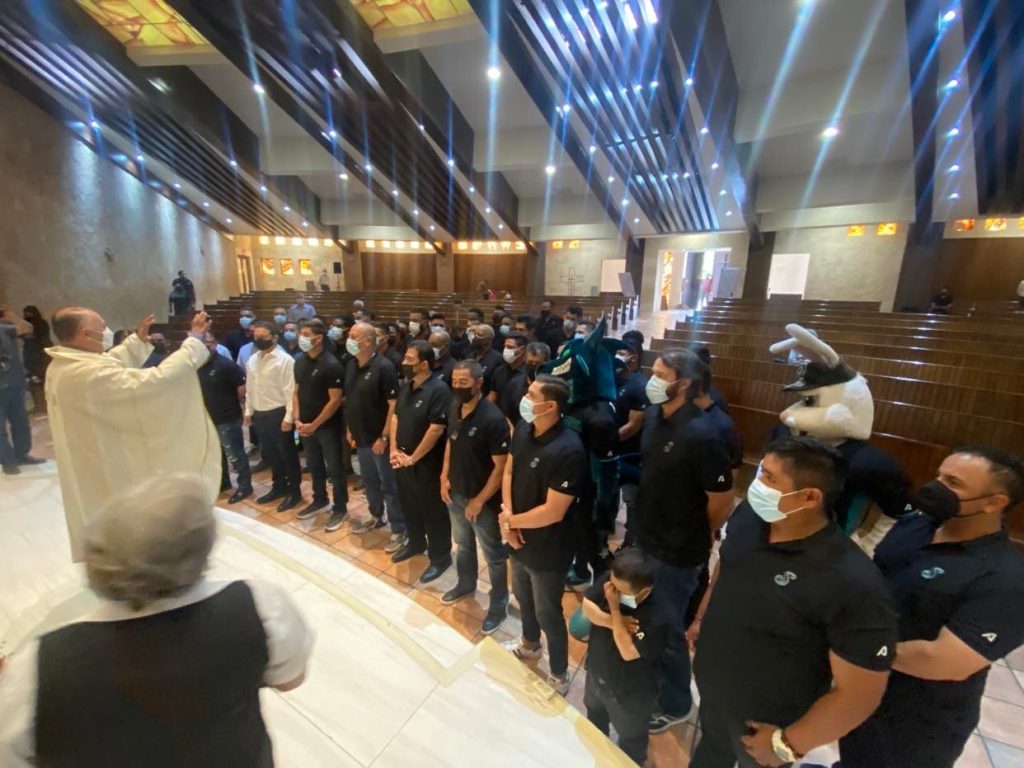 El Presidente del Consejo de Administración de Saraperos, Ing. César H. Cantú García, encabezó el grupo de jugadores, cuerpo técnico y directiva que asistió a la misa oficiada por el Padre Juan Manuel Ledezma.