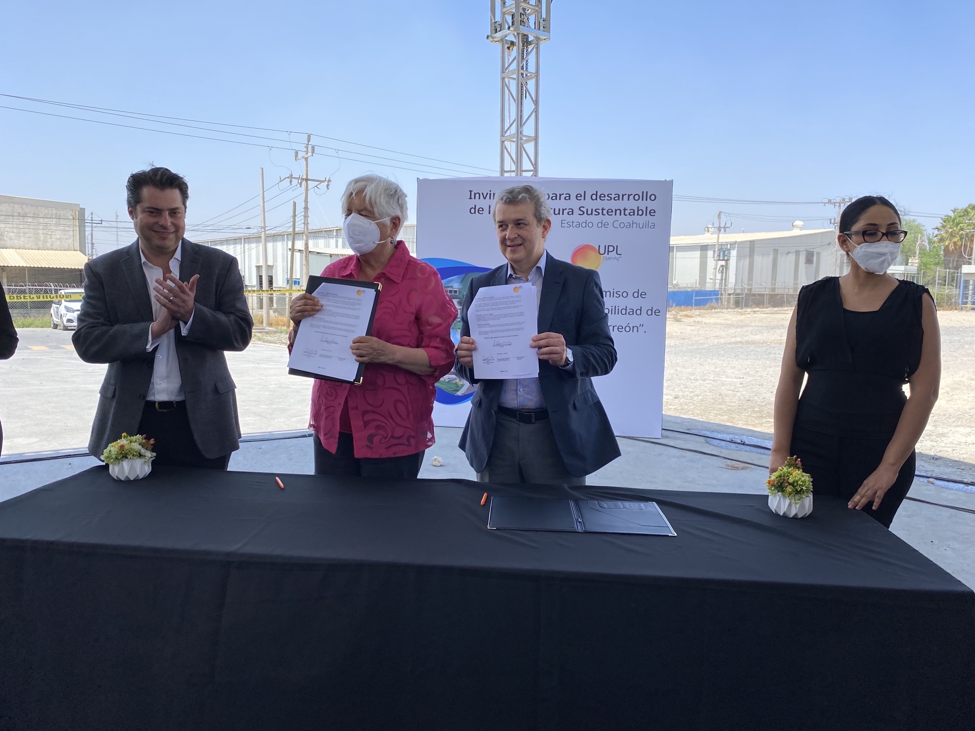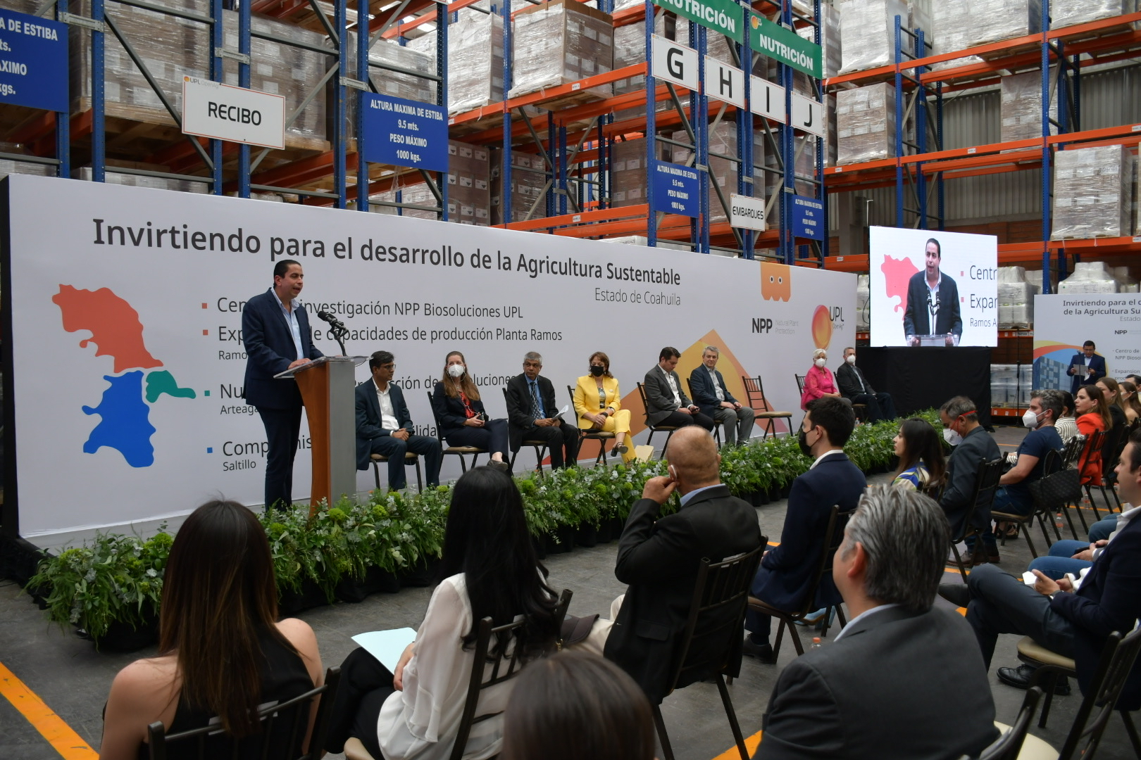 Morales Padilla en compañía del secretario de la Vivienda y Ordenamiento Territorial en el Estado, Enrique Martínez presenciaron el anuncio de inversión de la empresa, misma que comprende la construcción de un centro de investigación NPP Biosoluciones y la expansión de capacidad en la producción en Ramos Arizpe. Asimismo, en Arteaga se contempla la construcción de una nueva planta de producción de biosoluciones y la firma de compromiso de sustentabilidad del ‘Jardín Torreón’ en el Bosque Urbano en Saltillo. (EDUARDO SERNA)