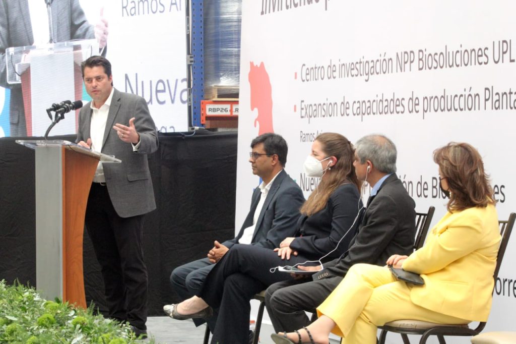 En su intervención, Roberto Escalante Soto, Director de UPL México y Uruguay, expuso que con estas nuevas instalaciones se enfocarán al segmento de bioestimulantes y nutrición especializada de las plantas con ingredientes naturales y 100 por ciento mexicanos, por lo que Coahuila será referente a nivel nacional y en Latinoamérica.
