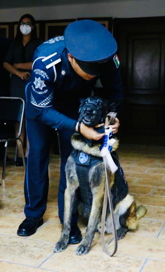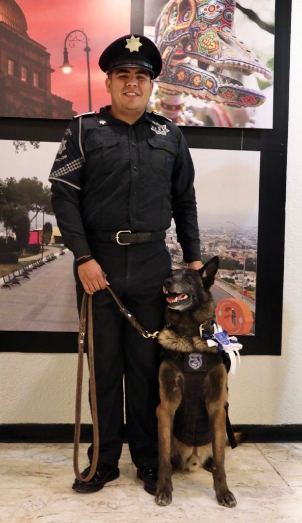 Luego de la condecoración por parte del alcalde Chema Fraustro, este ejemplar que se jubila será dado en adopción al policía municipal con el que trabajó a lo largo de estos años.