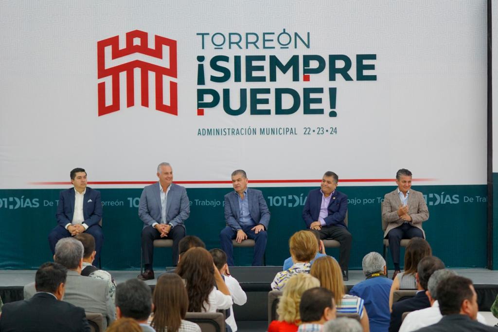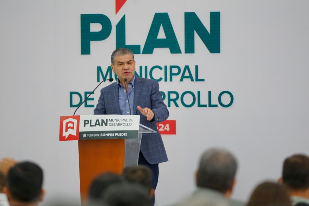 En la presentación de este Plan Municipal de Desarrollo, que se celebró en el Centro de Convenciones de Torreón, estuvieron presentes, además, Eduardo Olmos Castro, Diputado Presidente de la Junta de Gobierno del Congreso del Estado; Miguel Felipe Mery Ayup, Magistrado Presidente del Tribunal Superior de Justicia del Estado; Rogelio García Pérez, Mando Especial de La Laguna.