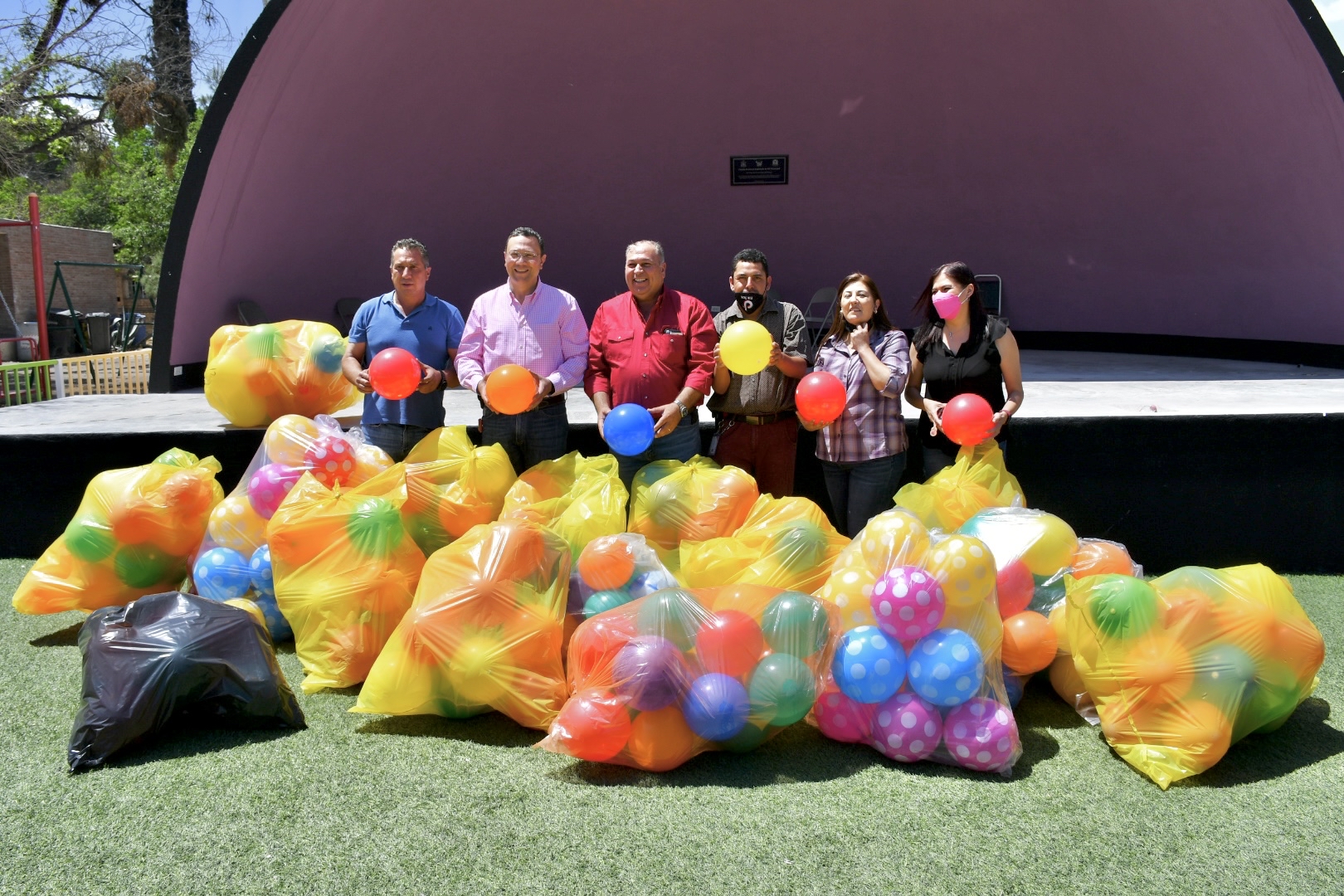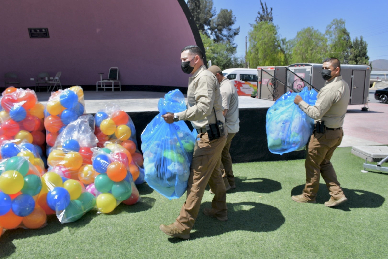 En esta ocasión, titulares y personal de las áreas de la Secretaria del Ayuntamiento, Comunicación Social, Departamento Jurídico, dirección de Servicios Concesionados, Salud, Seguridad Pública y Protección Civil aportaron cerca de 10 mil pelotas y 500 peluches en la explanada del DIF Municipal.