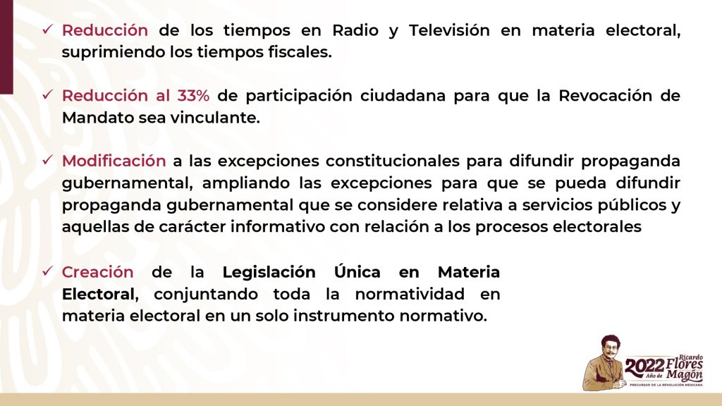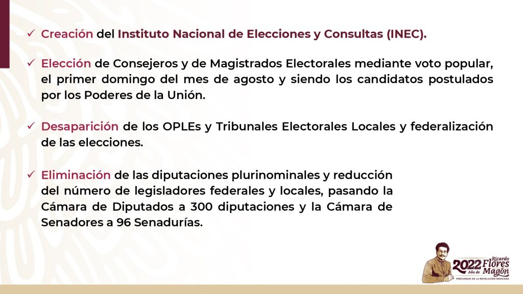 Ciudad de México.- Este jueves, el presidente Andrés Manuel López Obrador dio a conocer en su conferencia mañanera en Palacio Nacional su propuesta de reforma electoral. De manera resumida, esto es lo que propone la iniciativa del Ejecutivo federal que se enviará hoy mismo al Congreso de la Unión.