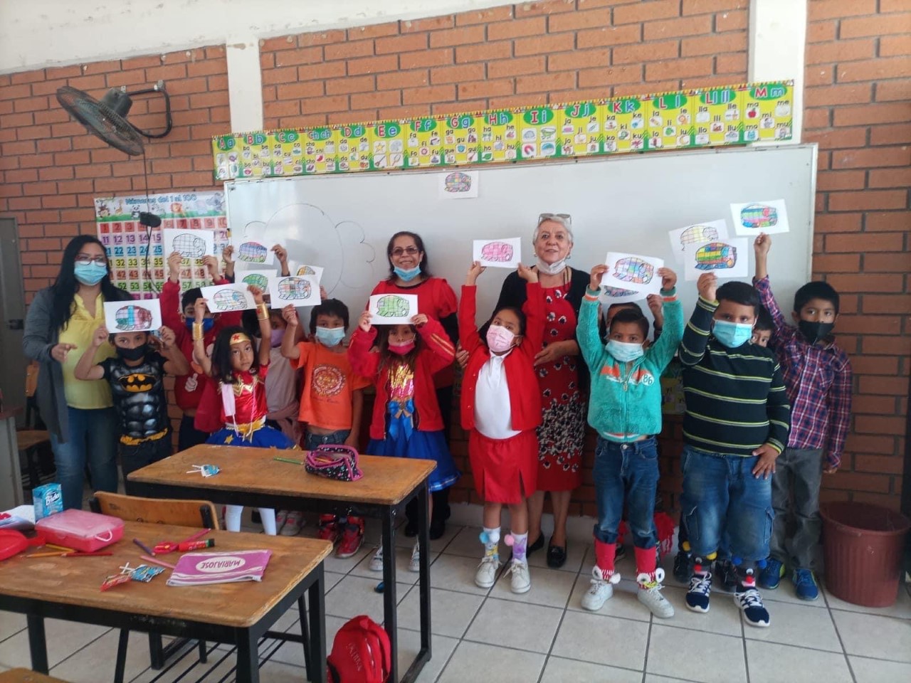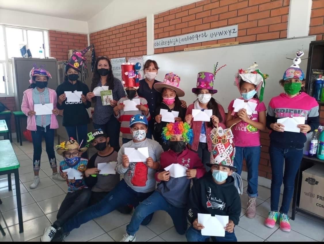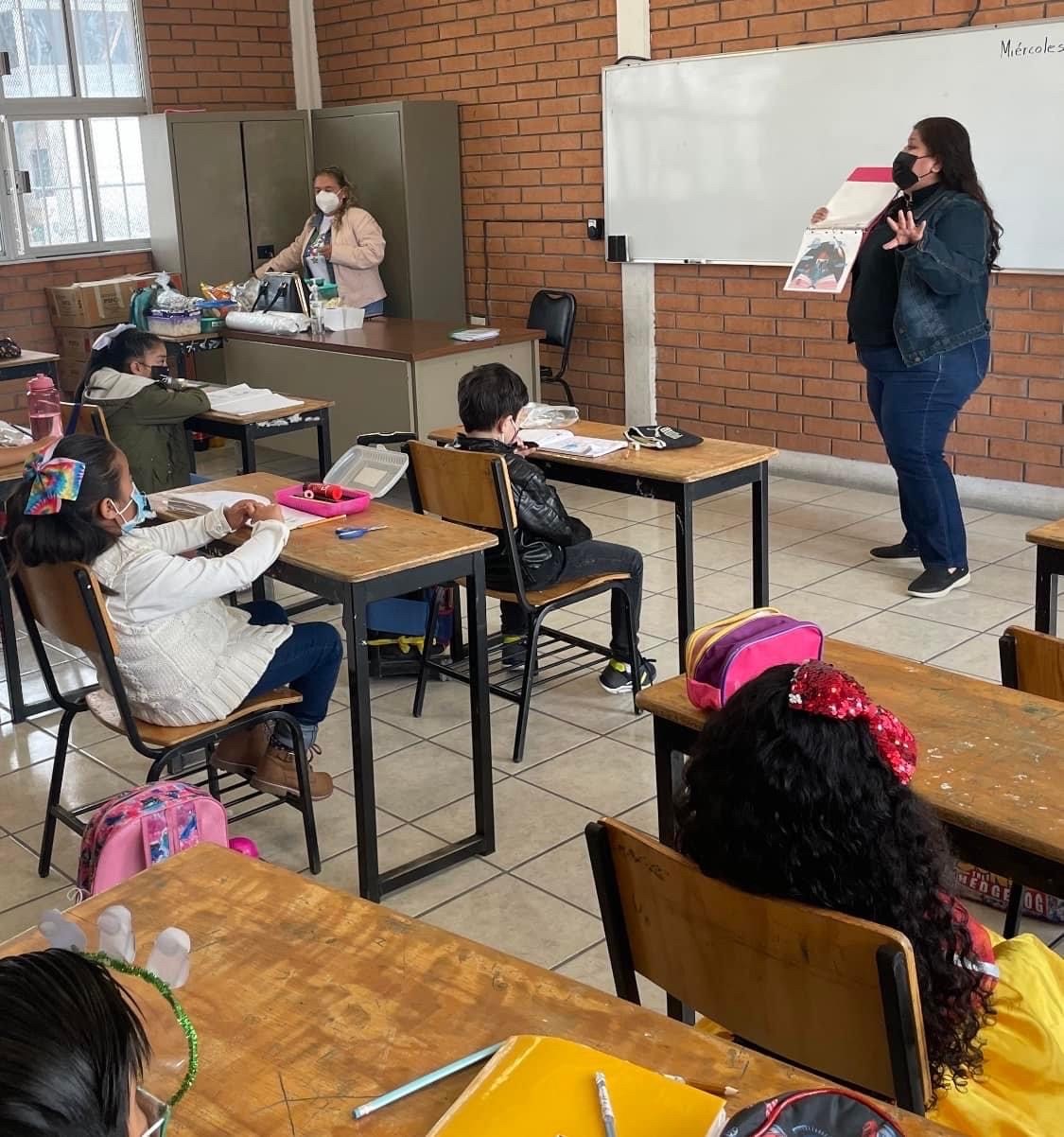 El trabajo entre bibliotecarios y los alumnos no sólo tomó lugar en las aulas sino también en la explanada de la escuela primaria donde los estudiantes fueron acompañados por sus profesores y la directora del plantel Martha Bolívar.