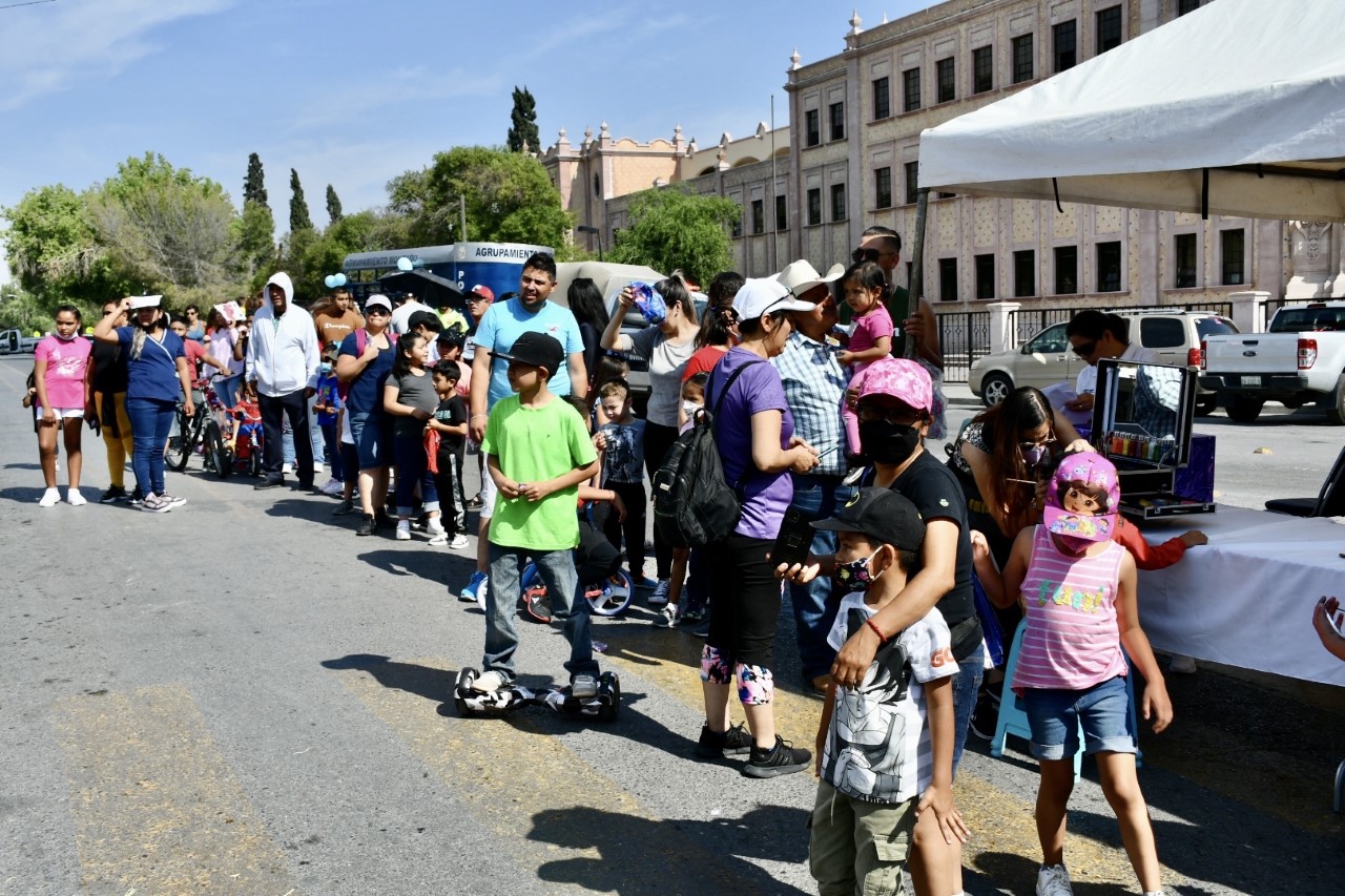 Desde temprana hora, en el cruce del bulevar Venusiano Carranza y Avenida Universidad, se disfrutó de la música y el entretenimiento con personajes de diversas películas de fantasía. Además, se contó con la presencia de la policía montada quienes ofrecieron para la toma de fotografías con los niños, quienes montaron un pony, pintacaritas y la entrega de quequitos. (EDUARDO SERNA).