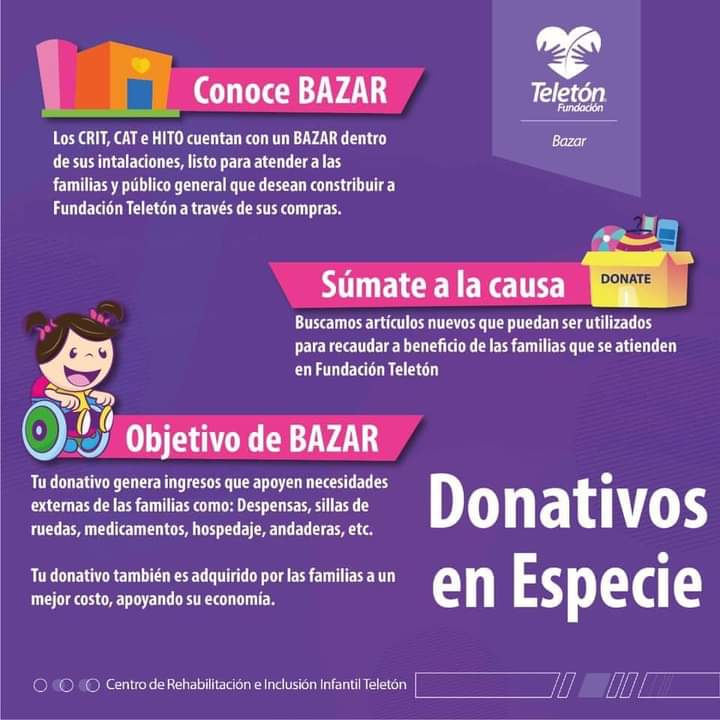 Cabe mencionar que a través del bazar se generan también ingresos que apoyan necesidades externas de las familias de los menores que son atendidos, como son la adquisición de despensas, medicamentos, hospedaje, y artículos como sillas de ruedas y andaderas para ayudar a la movilidad de los pequeños.