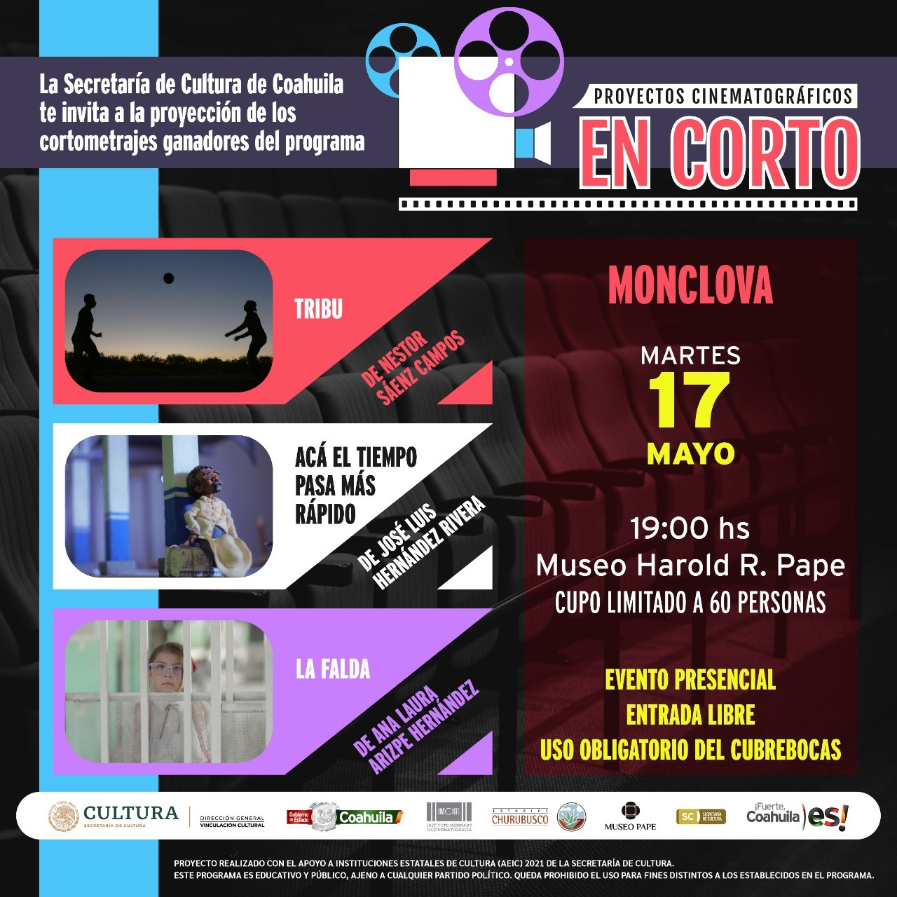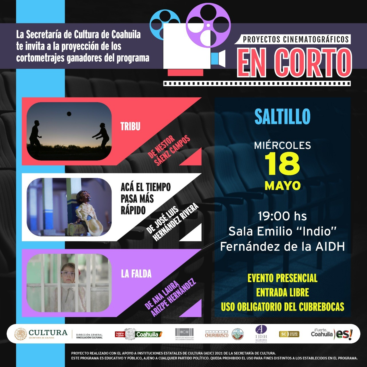 Así, para dar visibilidad y promover los cortos hechos en Coahuila, se realizará una gira de estreno de estos cortos ganadores del 2021, que son: