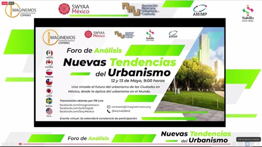 “Nuevas Tendencias del Urbanismo” también es organizado por Imaginemos Coahuila Sureste, el programa Barco Mundial de la Juventud (SWYAA, por sus siglas en inglés), delegación México, además la Asociación Mexicana de Urbanistas y la Asociación Mexicana de Institutos Municipales de Planeación.
