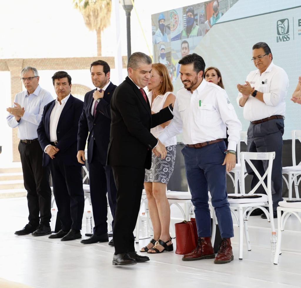 Estuvieron presentes Fernando Alanís Ortega, director general de Baluarte Minero; Rafael Rebollar González, director general de Industrias Peñoles; doctor Roberto Bernal Gómez, secretario de Salud de Coahuila; Nazira Zogbi Castro, secretaria de Trabajo de Coahuila; Senadora Verónica Martínez García, vicepresidenta de la Mesa Directiva del Senado de la República; Karen Flores Arredondo, directora general de la CAMIMEX; Ricardo Schumn Cerpa, subsecretario de Desarrollo de Coahuila; doctora Célida Duque Molina, directora de Prestaciones Médicas del IMSS; Javier Guerrero García, director de Operación y Evaluación del IMSS; y doctor Leopoldo Santillán Arreygue, titular del Órgano de Operación Administrativa Desconcentrada (OOAD) del IMSS en Coahuila.