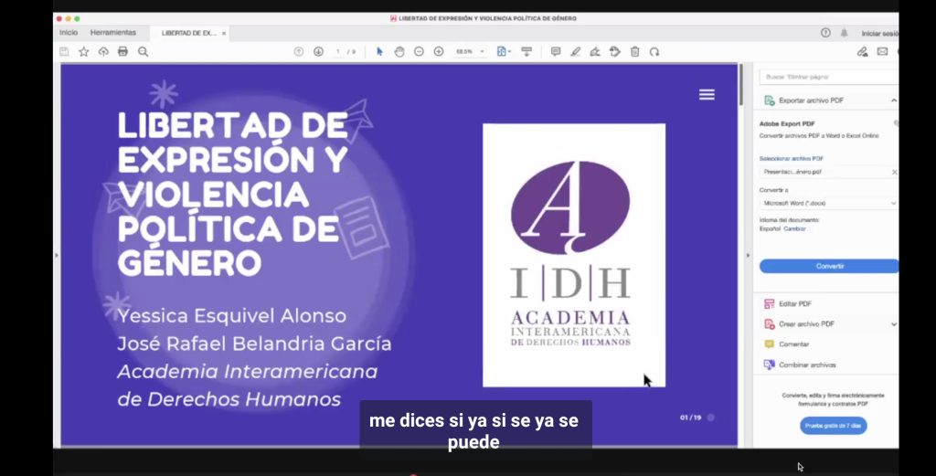 Intervino José Rafael Belandria García, con el tema “Libertad de expresión y violencia política de género”; que contempla la violencia política contra las mujeres en razón de género, marco normativo internacional y nacional, los límites a la libertad de expresión, el desarrollo legal y jurisprudencial de la violencia política contra las mujeres.