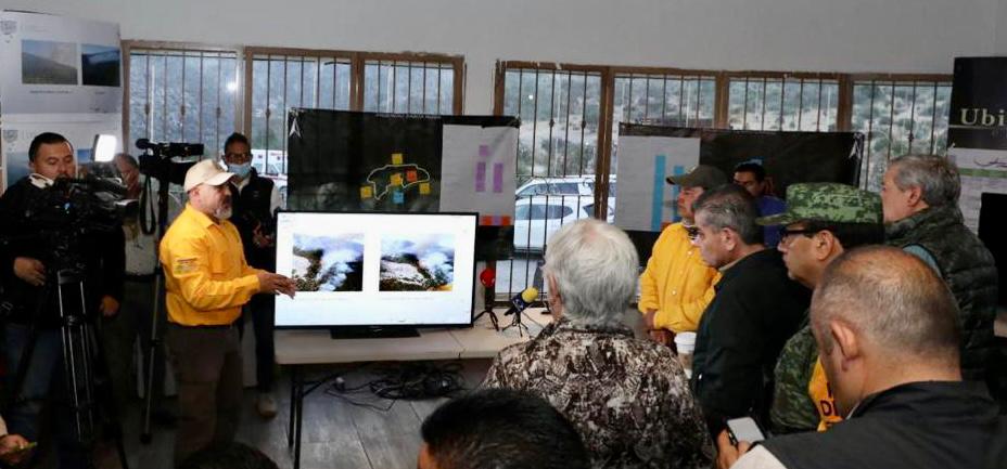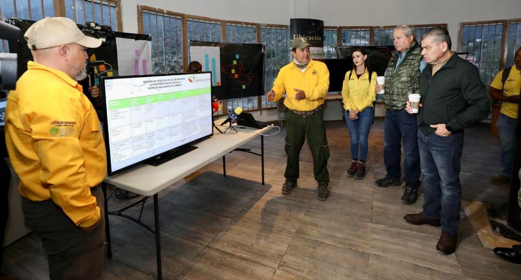 Durante la supervisión de este martes se dio a conocer que en el incendio en el Cañón de San Lorenzo participan 42 brigadistas de la Secretaría del Medio Ambiente, Conafor, Sedena, Brigadistas Rurales, Profauna y Voluntarios.