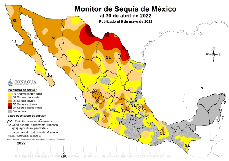 En contraste con mayo de 2021 no se contaba con municipios en rojo y tras una revisión a años anteriores, Coahuila no había alcanzado este nivel desde el 2014 en que se empezó este monitoreo, aunque si se detalla en gráficas que solo 2012 fue el año con la mayor afectación por una sequía parecida a la que está atravesando la entidad en estos momentos.