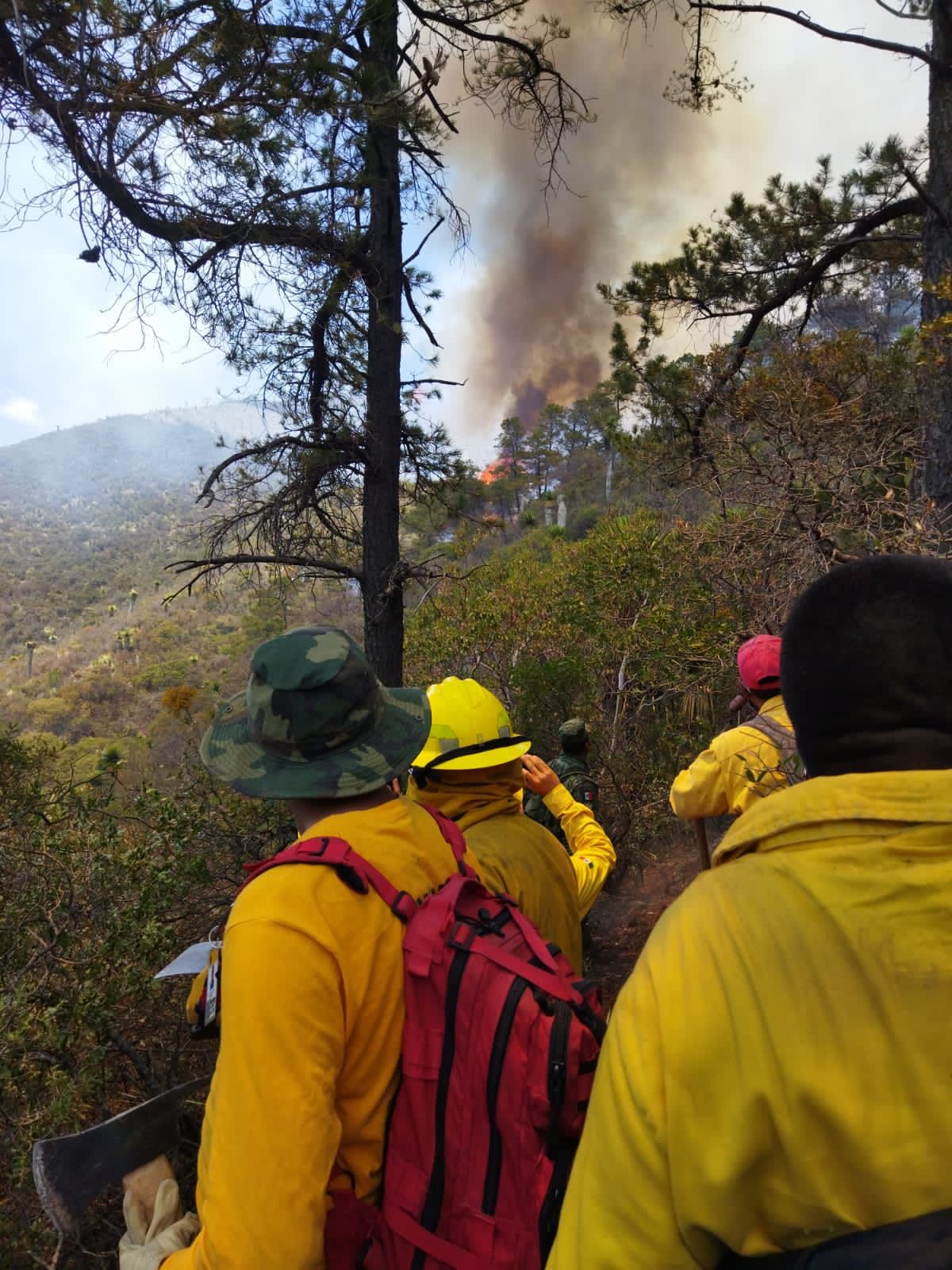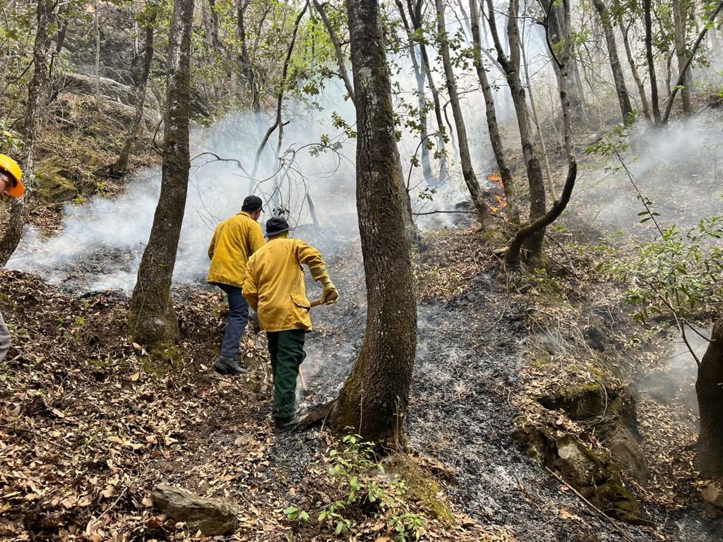 Con un total de 34 personas de las subdirecciones de Parques y Jardines, así como Recursos Naturales, la Dirección de Medio Ambiente y Espacios Urbanos participa en labores intensas de combate en dos puntos: ejido Cuauhtémoc y San Lorenzo, destacó la titular Sofía Franco Villalobos.