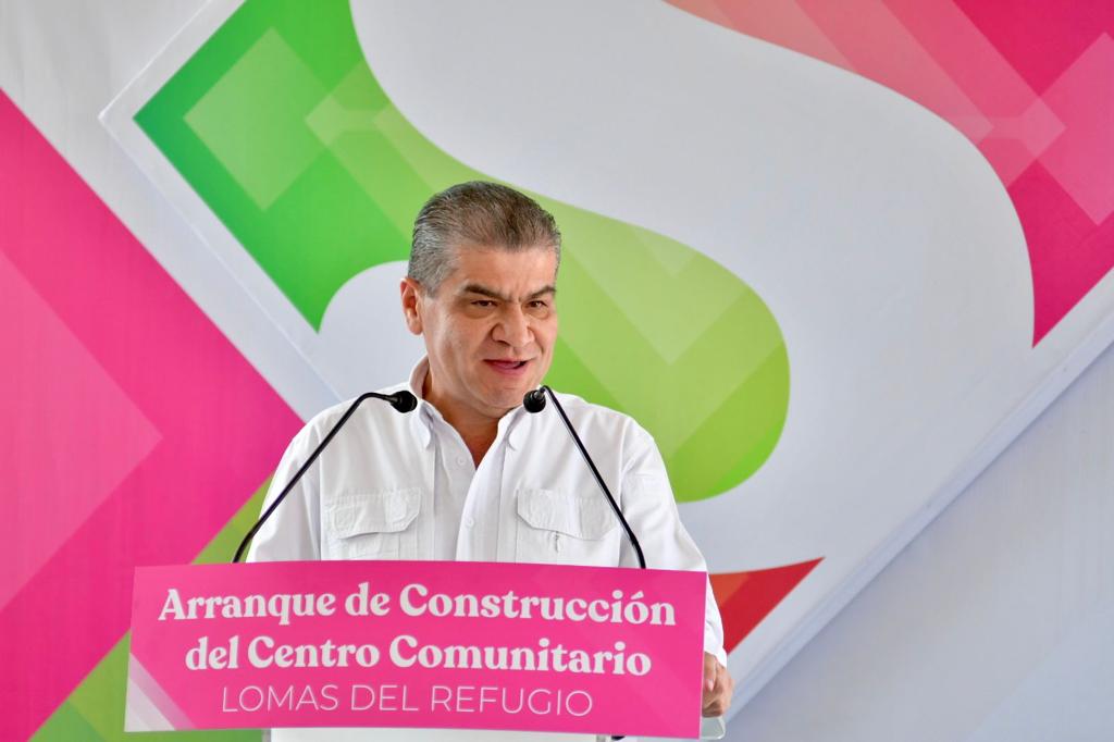 El gobernador Miguel Ángel Riquelme Solís acompañó al alcalde José María Fraustro Siller en el arranque de la construcción del Centro Comunitario en la Colonia Lomas del Refugio, en el que se invertirán 5 millones de pesos y se beneficiará a alrededor de 800 personas.