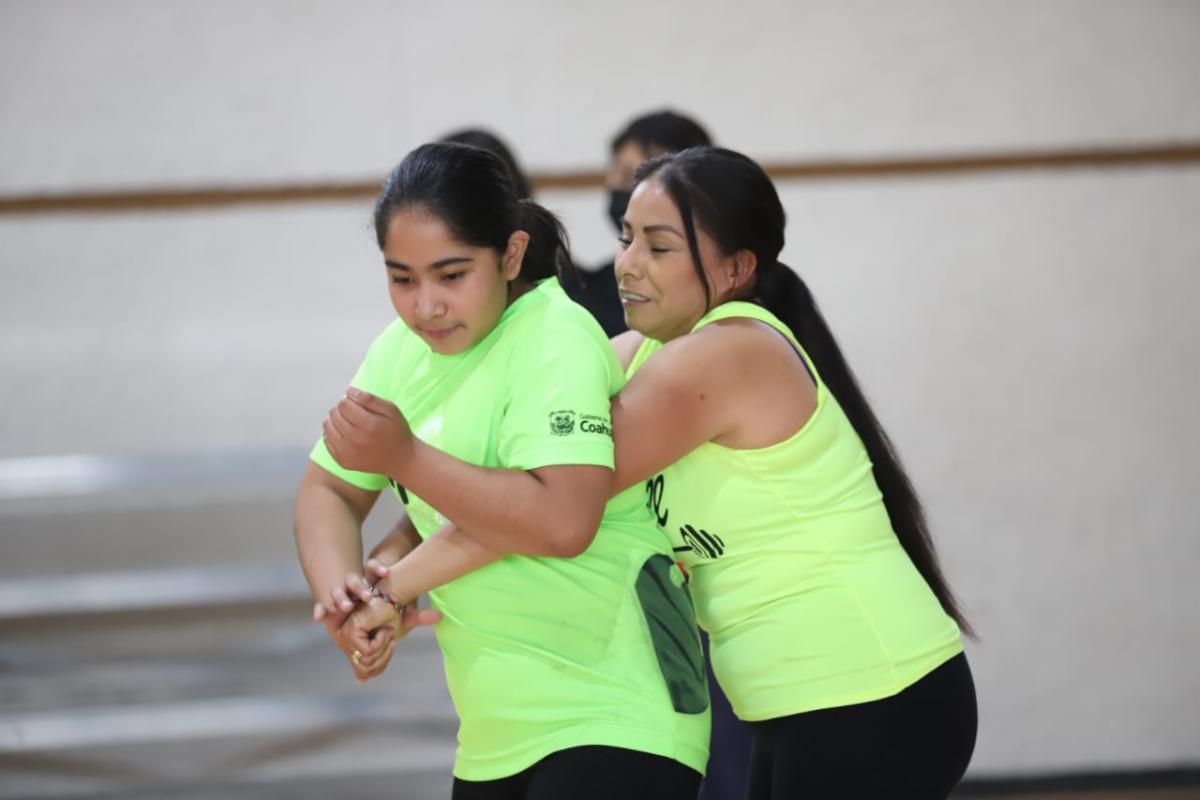 Mujeres saltillenses asistieron a las instalaciones del Gimnasio Municipal donde participaron en la clínica de Defensa Personal para obtener conocimientos y técnicas específicas en el tema.