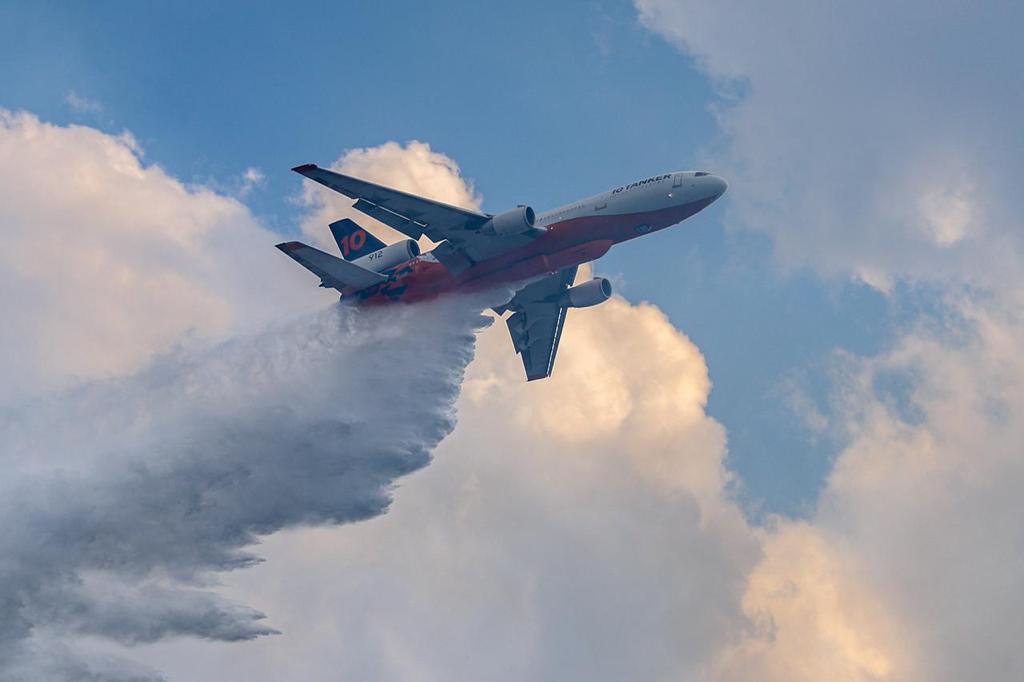 Esta aeronave ha estado realizando descargas de agua y retardante en los puntos más difíciles, ayudando de gran manera en el control de los mismos.