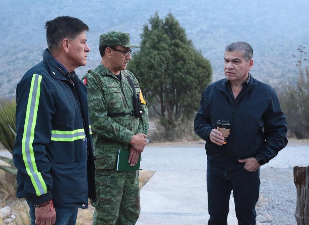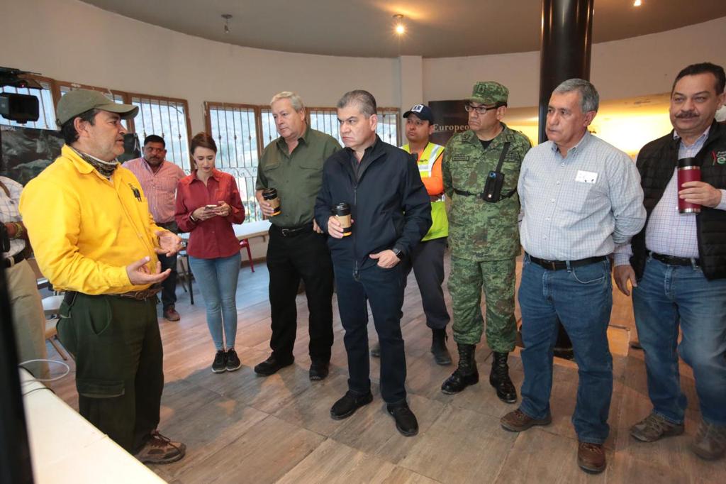 El mandatario coahuilense enfatizó que los resultados del combate a los incendios y la protección y seguridad de las personas que habitan los lugares afectados se ha logrado con coordinación, apoyo y trabajo del Ejército —que además apoya con un helicóptero—, la Guardia Nacional, CONAFOR, CONANP, brigadas rurales, Protección Civil del Estado y Municipios, PROFAUNA, brigadas municipales y voluntarios.