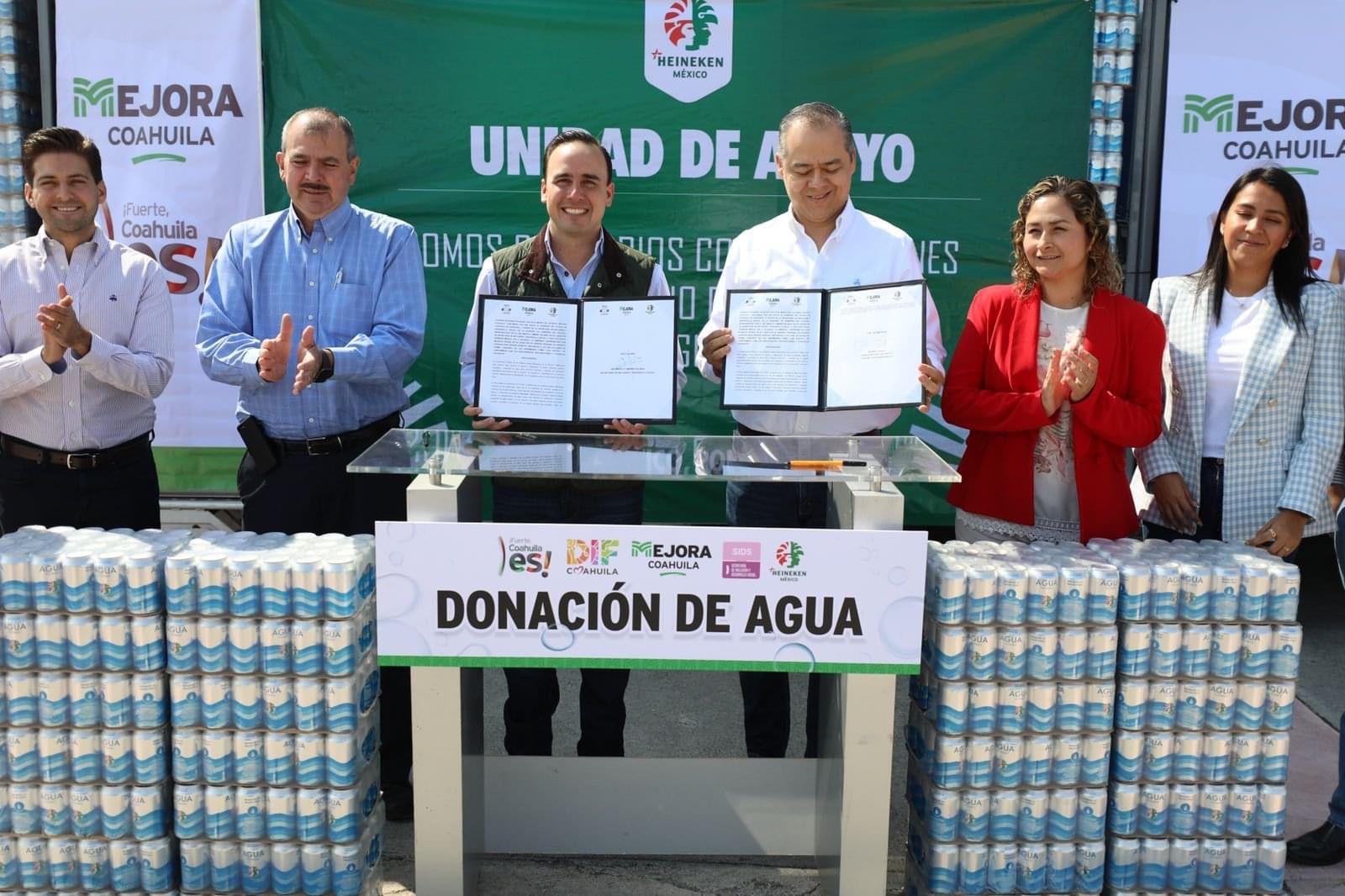 “Firmamos un convenio con la empresa Heineken México para desarrollar proyectos y apoyos sociales. Para iniciar esta colaboración recibimos un donativo de agua embotellada para surtir de este vital líquido a todos los comedores de los adultos mayores en el estado. Con Mejora Coahuila seguimos sumando esfuerzos entre la iniciativa privada y el gobierno para bien de nuestra gente