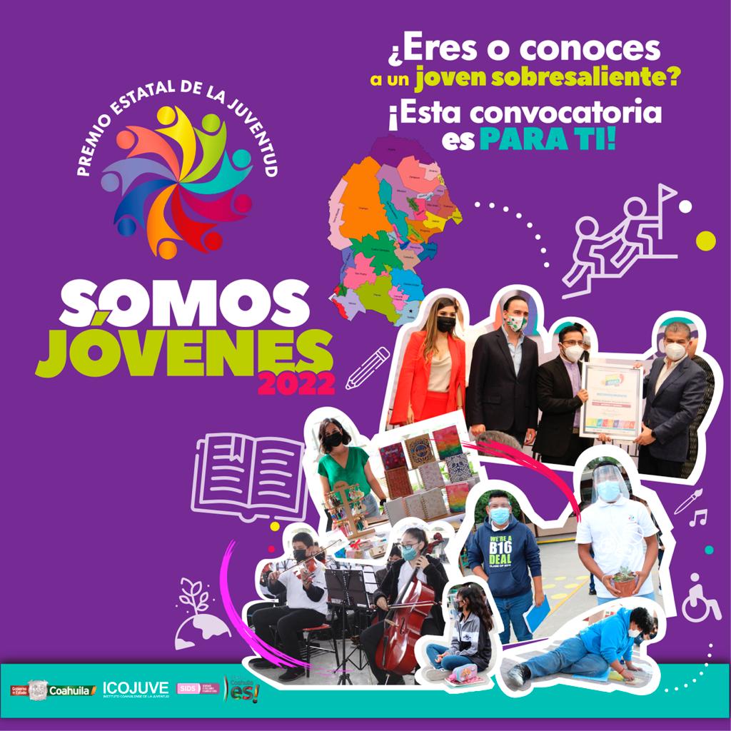 El Gobierno del Estado de Coahuila, a través de la Secretaría de Inclusión y Desarrollo Social y el Instituto Coahuilense de la Juventud (ICOJUVE), convoca a las y los jóvenes residentes en la entidad a participar en el Premio Estatal de la Juventud “Somos Jóvenes 2022”.