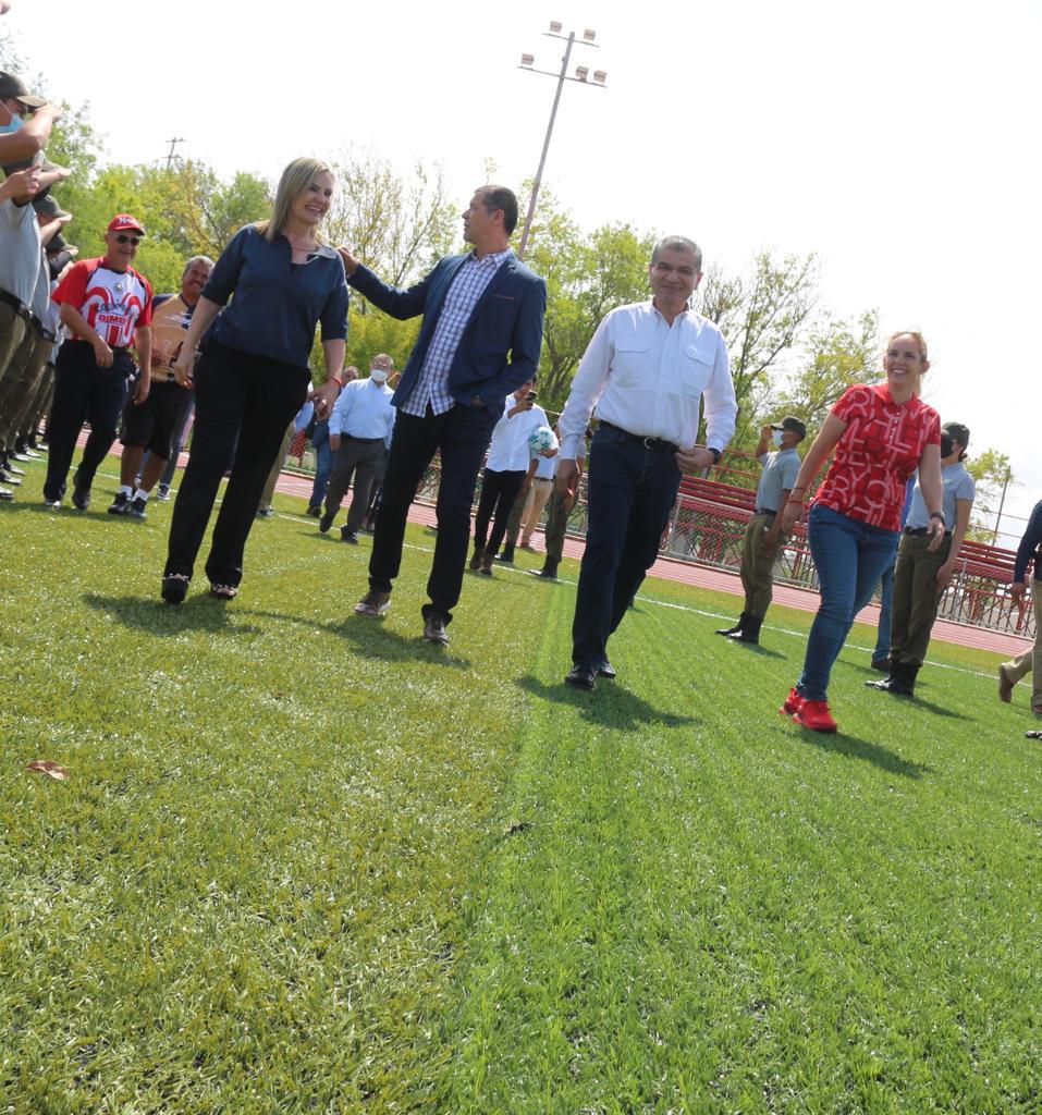 En gira de trabajo por Piedras Negras, el gobernador Miguel Riquelme también inaugura cancha de futbol de pasto sintético, con inversión de más de 6 millones de pesos