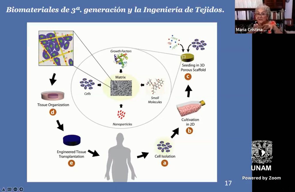 En los de tercera generación, comentó Piña Barba, se transitó de utilizar los de tipo inertes para sustitución de tejidos vivos al diseño de bioactivos y biodegradables para la reparación de tejidos. “Así se ha pasado de sustituir a reparar y ahora a regenerar tejidos vivos”.