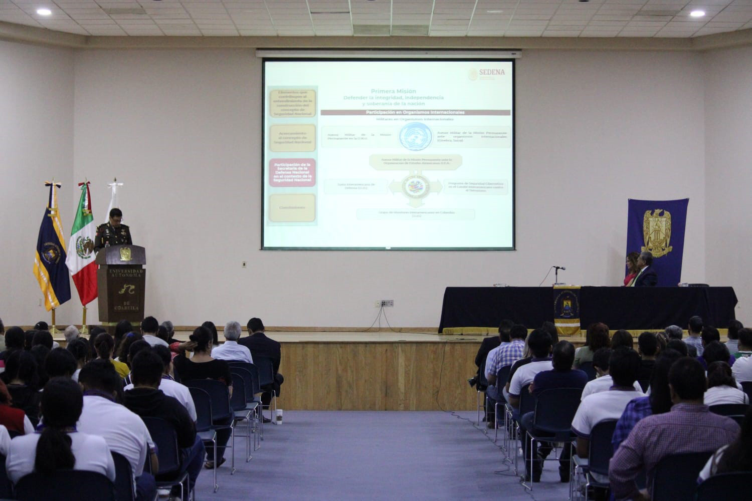 En su ponencia el comandante de la Sexta Zona Militar, explicó que la Seguridad Nacional es responsabilidad conjunta de los tres órdenes de Gobierno, de la sociedad en general y de las Universidades, pues consideró que solo así, podremos tener un entorno social armónico.