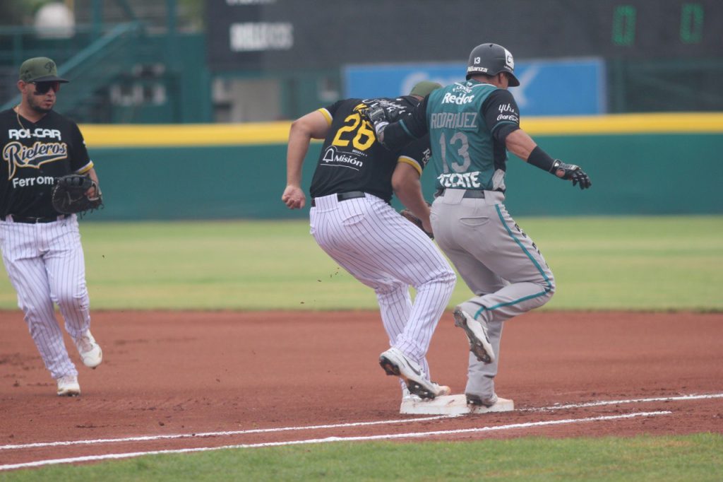 Rieleros reaccionó con ataque de 6 carreras ante el pitcheo de Javier Solano que sólo pudo sacar dos outs en el inning, Jorge González produjo la primera, Francisco Córdoba un par para darles la ventaja; Edson García con fly la cuarta, Henry Rodríguez una más y Leonardo Reginatto la sexta con imparable al izquierdo.