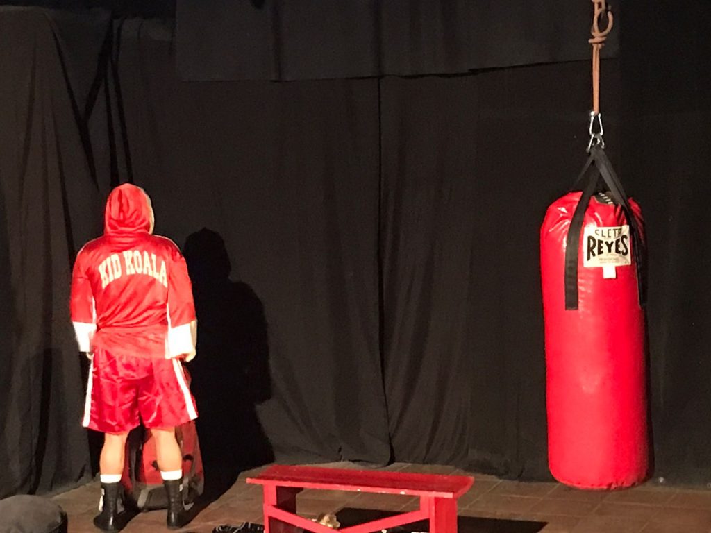 “Kid Koala recuerda momentos claves de su vida: la forma en la que empezó en el boxeo, cómo su carrera se truncó y el viaje repentino hacia el anonimato del que ahora pretende salir” explico el director y actor de la puesta en escena, Luis Javier Alvarado.