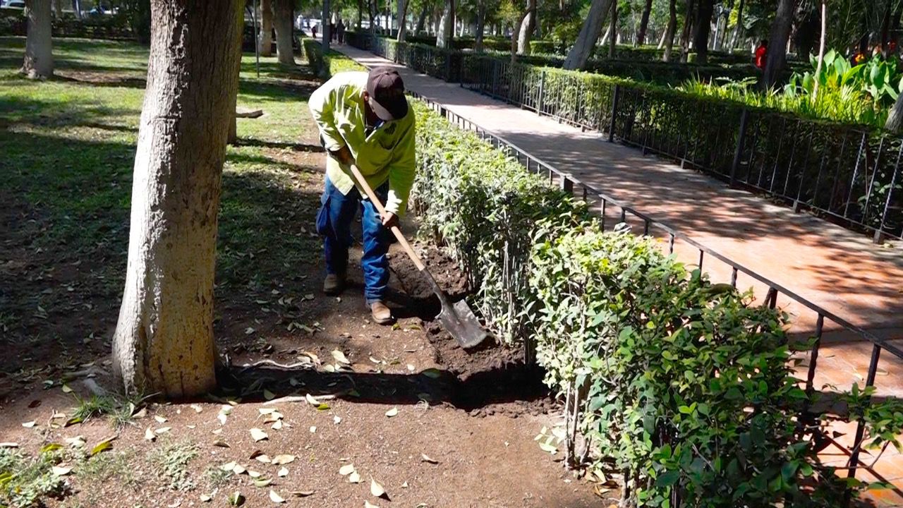 Informó que el personal de Parques y Jardines realiza acciones de poda, limpieza en los interiores y riego de jardines, entre otras, en este espacio con perímetro de un kilómetro.