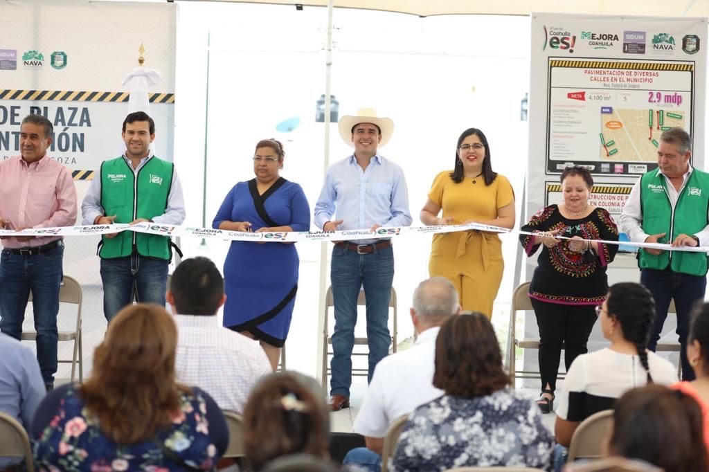 En Nava, en conjunto con la alcaldesa María del Pilar Valenzuela, se realizó la entrega de la plaza pública en la colonia Del Valle, así como obras de pavimentación en calles de las colonias Doctores y Venustiano Carranza.