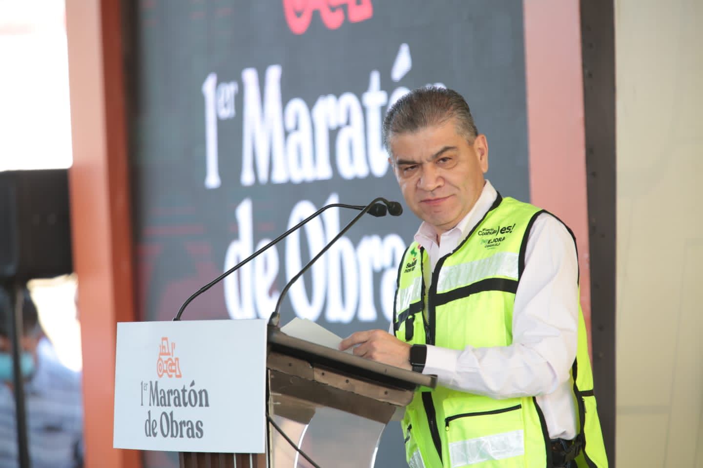 Al poner en marcha el Primer Maratón de Obras para Saltillo, el gobernador Miguel Ángel Riquelme Solís destacó que la coordinación, la unión de esfuerzos y el trabajo conjunto, permiten formalizar más acciones en beneficio de las y los coahuilenses.