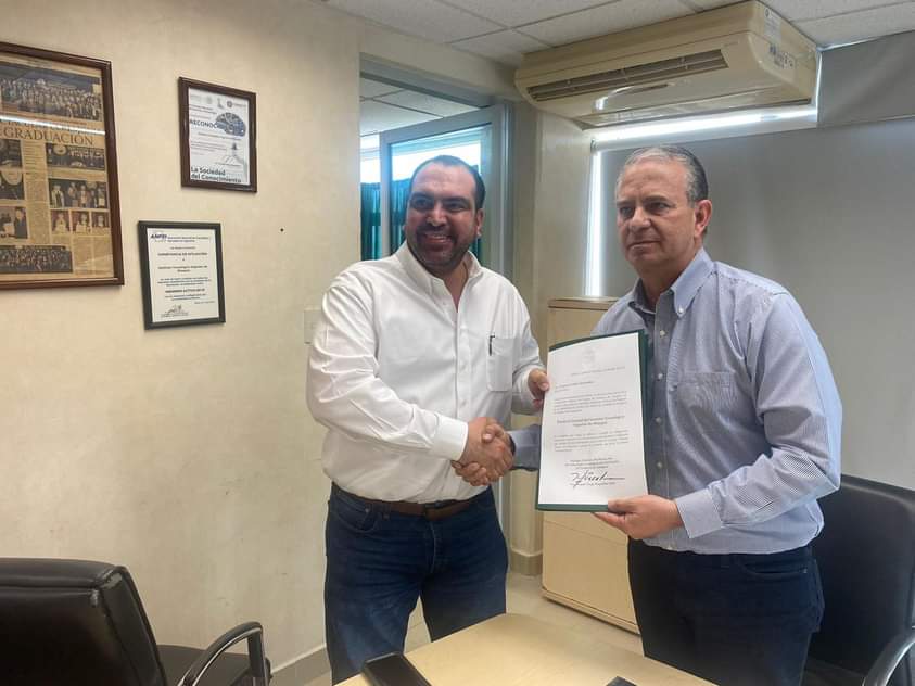 Múzquiz.- A nombre del gobernador Miguel Ángel Riquelme Solís, el secretario de Educación del Estado, Francisco Saracho Navarro, entregó nombramiento como director general del Instituto Tecnológico Superior de Múzquiz a Francisco Tobías Hernández.
