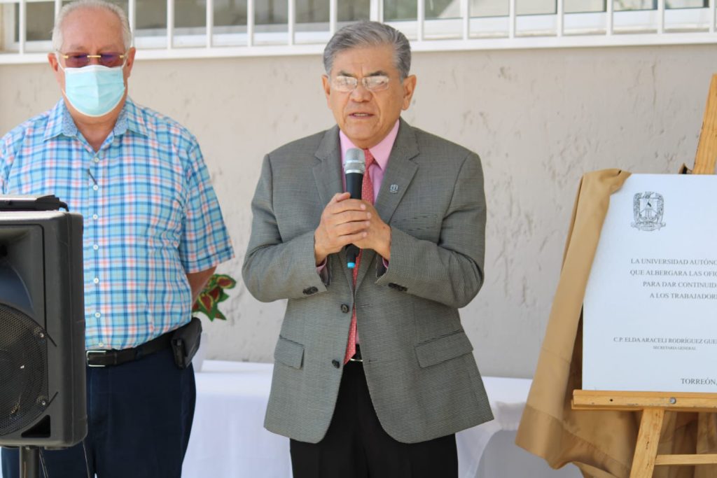 Torreón, Coahuila.- En gira de trabajo, el rector de la Universidad Autónoma de Coahuila, Salvador Hernández Vélez, inauguró las nuevas instalaciones que albergarán al Sindicato Único de Trabajadores de la Universidad Autónoma de Coahuila con sede en Torreón.