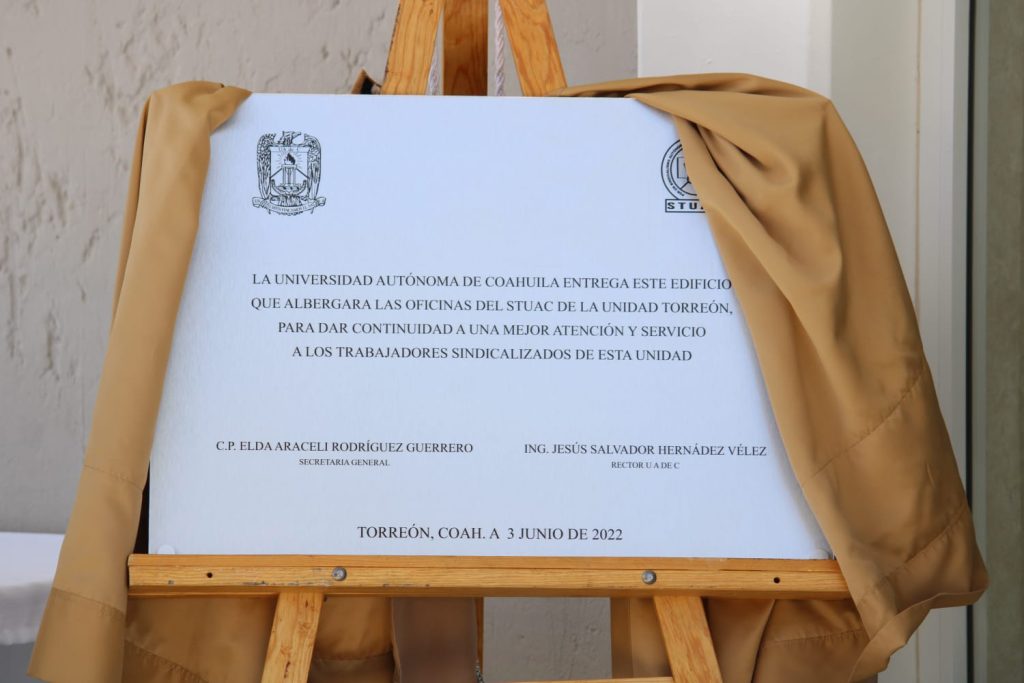 La secretaria general del STUAC, recibió de Salvador Hernández, las nuevas oficinas del Sindicato, que se acondicionaron en el edificio que anteriormente albergó a la Facultad de Ingeniería Civil, mismo que está ubicado en la calle Paseo de la Soledad esquina con bulevar Diagonal de las Fuentes, en la colonia Ampliación la Rosita, en Torreón.