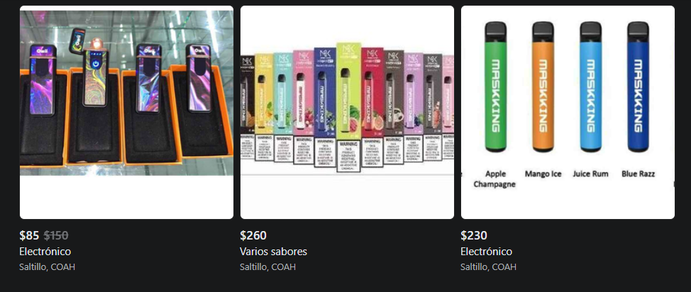 “Vapeadores Saltillo” es una de estas páginas donde se venden equipos completos, sales y líquidos para estos aditamentos electrónicos, donde estas publicaciones son recientes, incluso después del decreto del pasado 31 de mayo, por lo que pasaron a ser productos clandestinos.