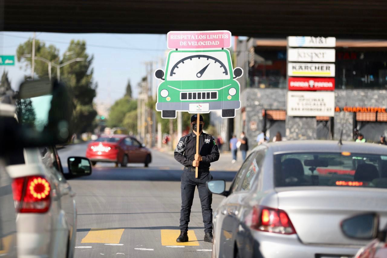 En el crucero se desplegó un operativo temático en el que elementos de Tránsito, Policía Preventiva y dirección de Proximidad Social y Prevención del Delito brindaron información a conductores y peatones para incrementar la cultura vial.