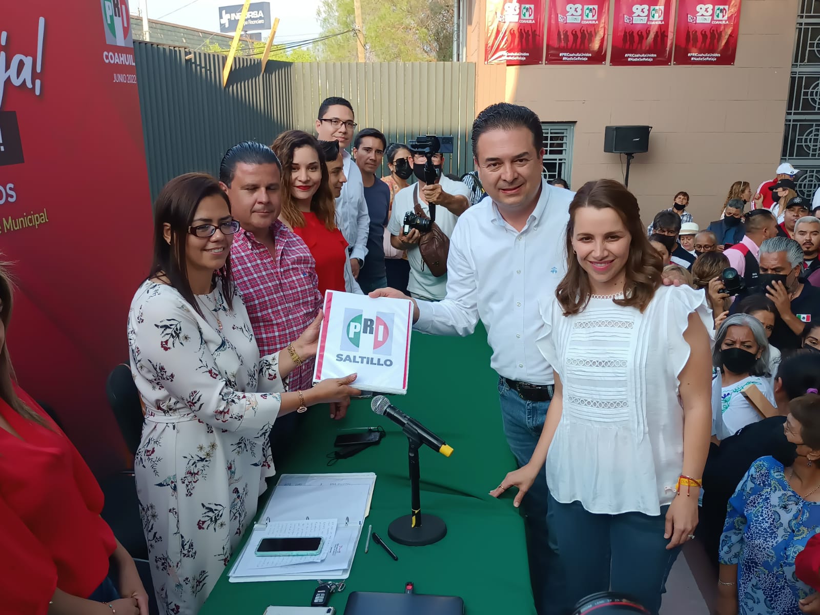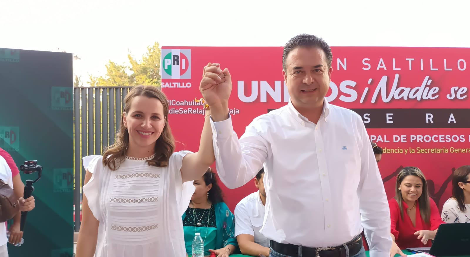 Ante los integrantes de la Comisión de Procesos Internos del PRI, Jaime Bueno Zertuche y María Bárbara Cepeda Entregaron la documentación correspondiente para solicitar su registro como aspirantes a la presidencia y a la secretaría general, respectivamente, del Comité Municipal del PRI en Saltillo.