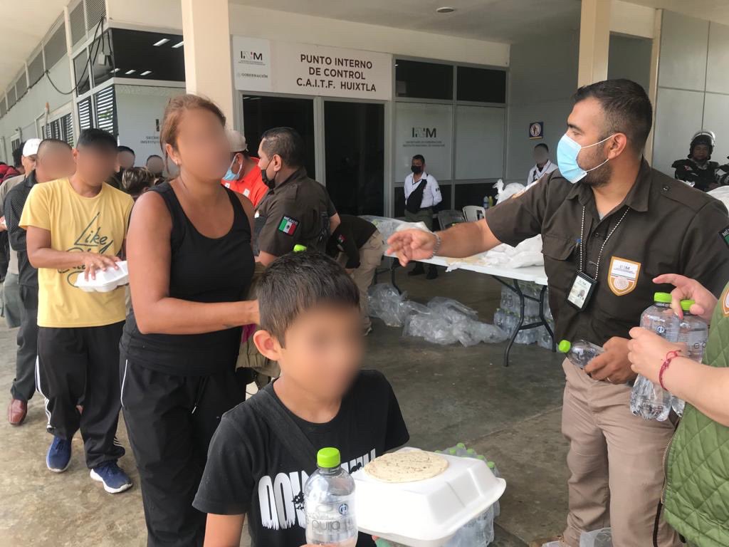 Durante las caminatas realizadas por las personas migrantes, el INM les proporcionó agua y alimentos y en los acuerdos se dio preferencia en la atención a grupos vulnerables, mientras que a los núcleos familiares se les trasladó a las instalaciones del Sistema para el Desarrollo Integral de la Familia (DIF) en Huixtla.
