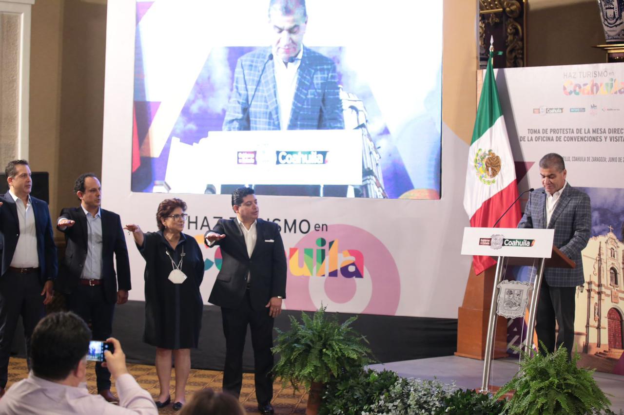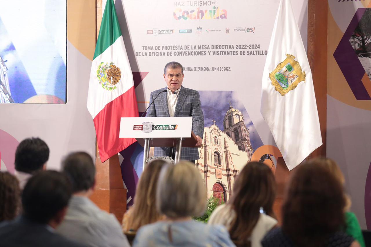 Al efectuar la toma de protesta de la Mesa Directiva Oficina de Convenciones y Visitantes de Saltillo (OCV) Saltillo 2022-2024, y ver la presentación del video promocional “Ven y Vívelo”, reafirmó su compromiso de fortalecer el turismo de Coahuila.