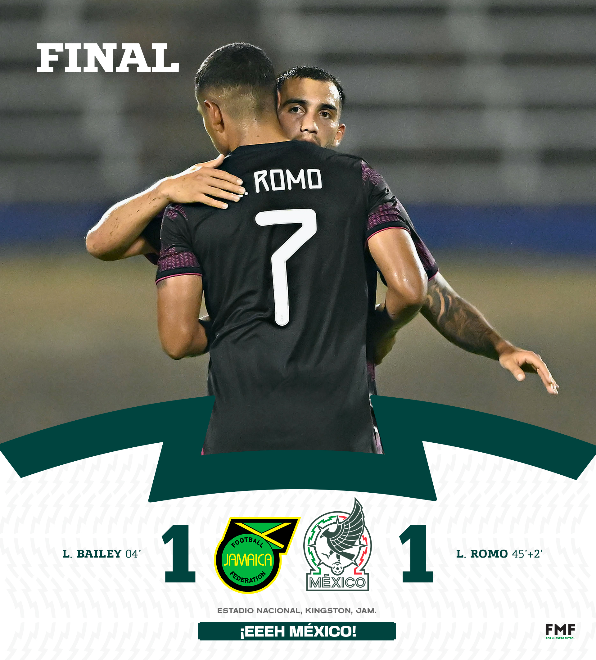 Luis Romo logró el empate con un buen cabezazo (45+2′), pero eso no abrió a Jamaica que siguió metido en su área, aferrándose a un contragolpe para volver a hacer daño. Kevin Álvarez salvó a México del segundo en contra.